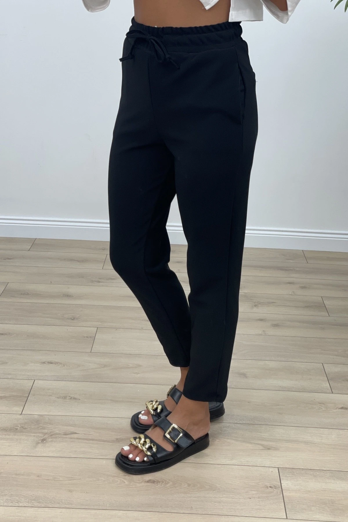 BEL LASTİKLİ FİTİLLİ PANTOLON – SİYAH