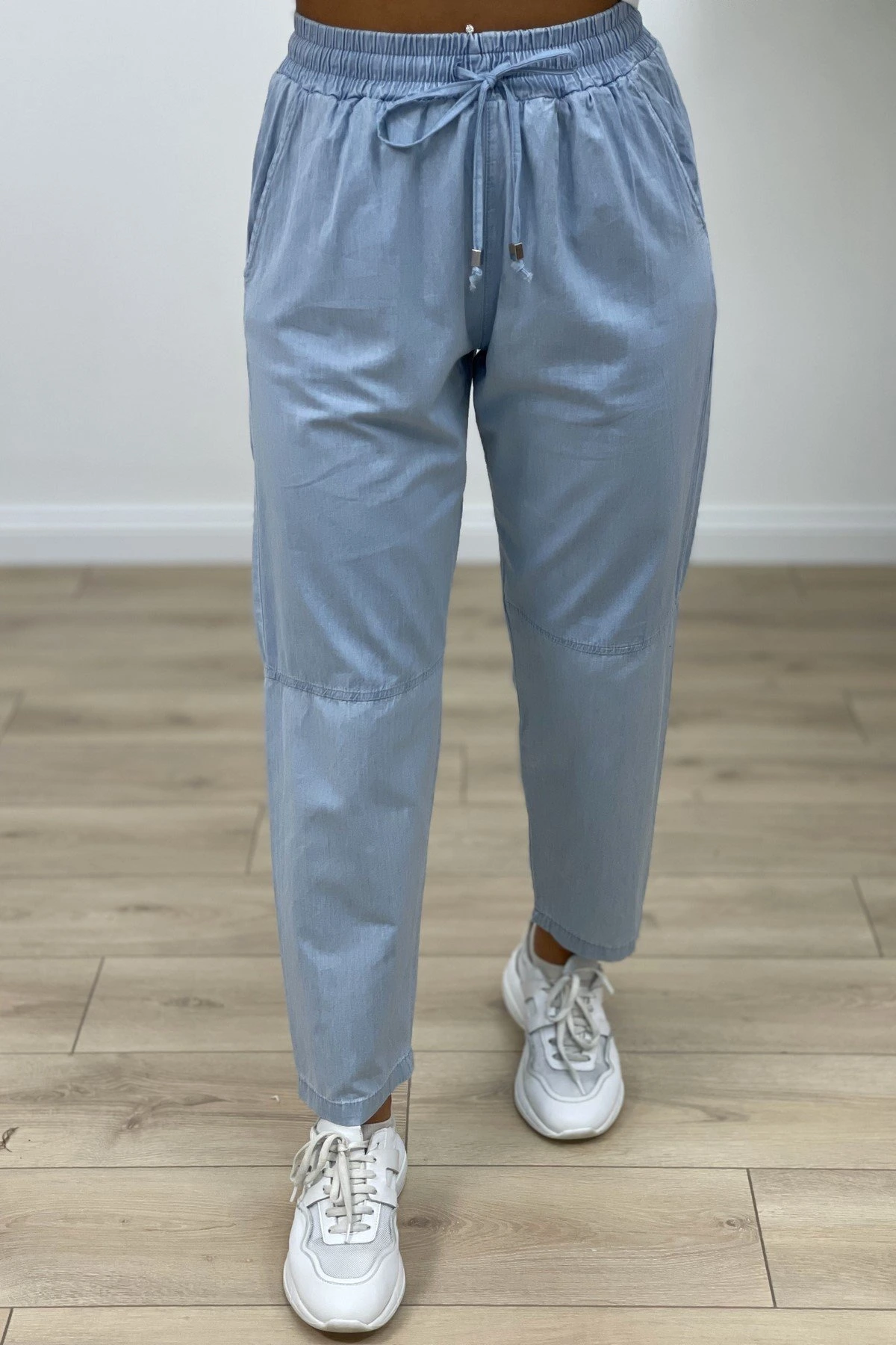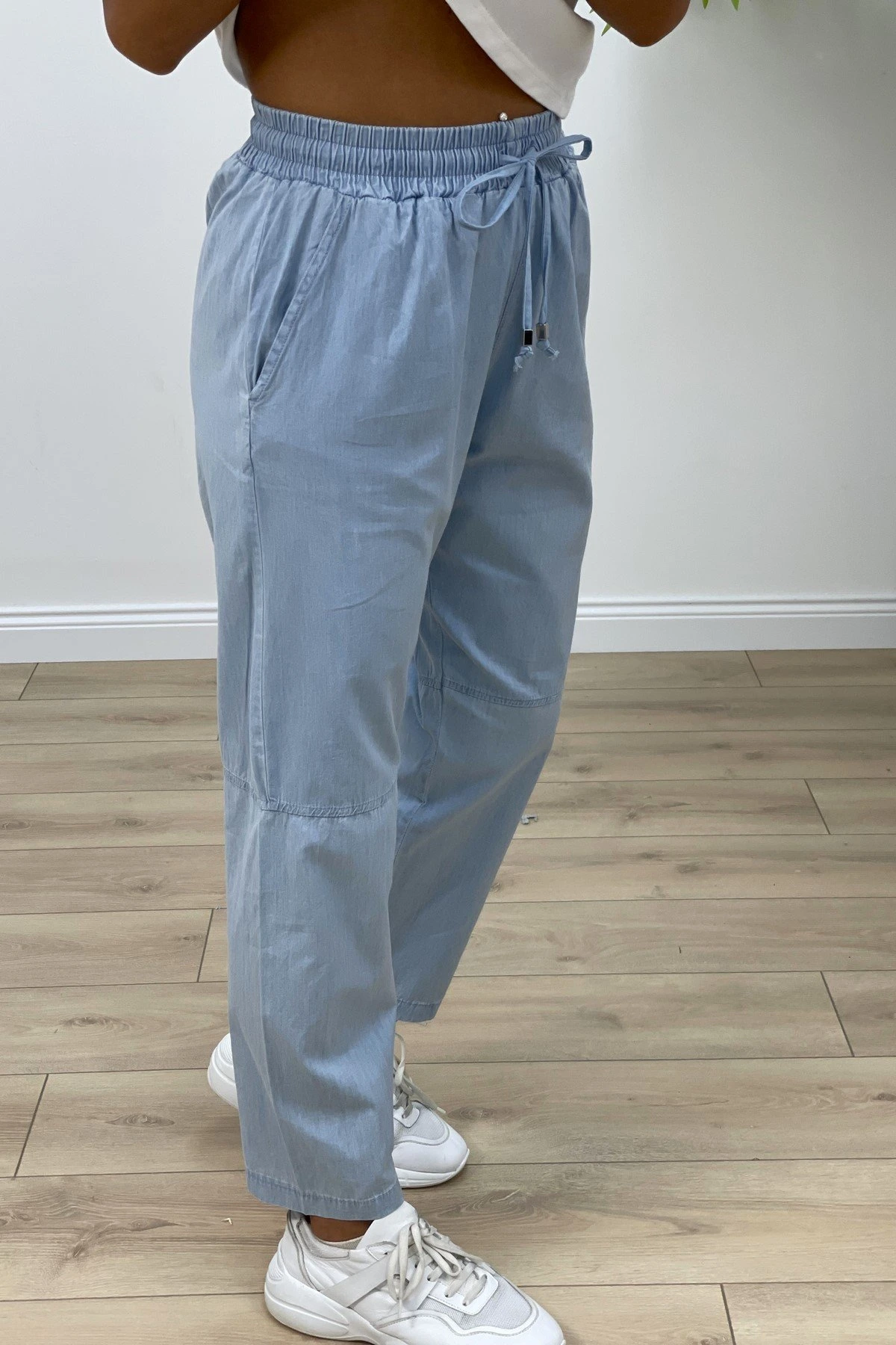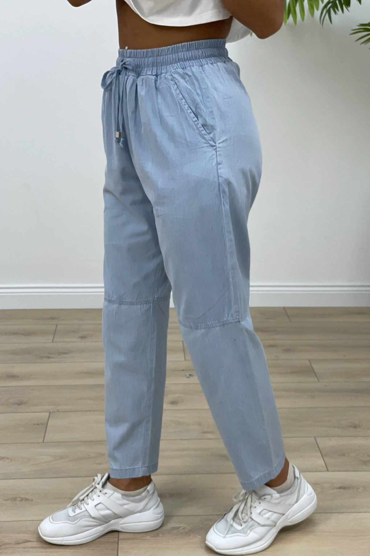 BELİ LASTİK DİZ DİKİŞ MAROKEN RAHAT PANTOLON – MAVİ