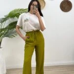“BELİ LASTİKLİ YÜKSEK BEL BOL PAÇA PANTOLON – YAĞ YEŞİL” için yorum yapan ilk kişi siz olun Yanıtı iptal et