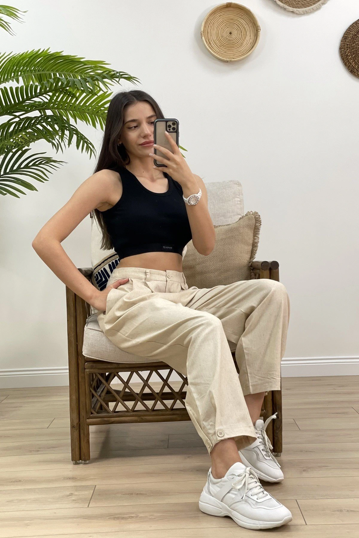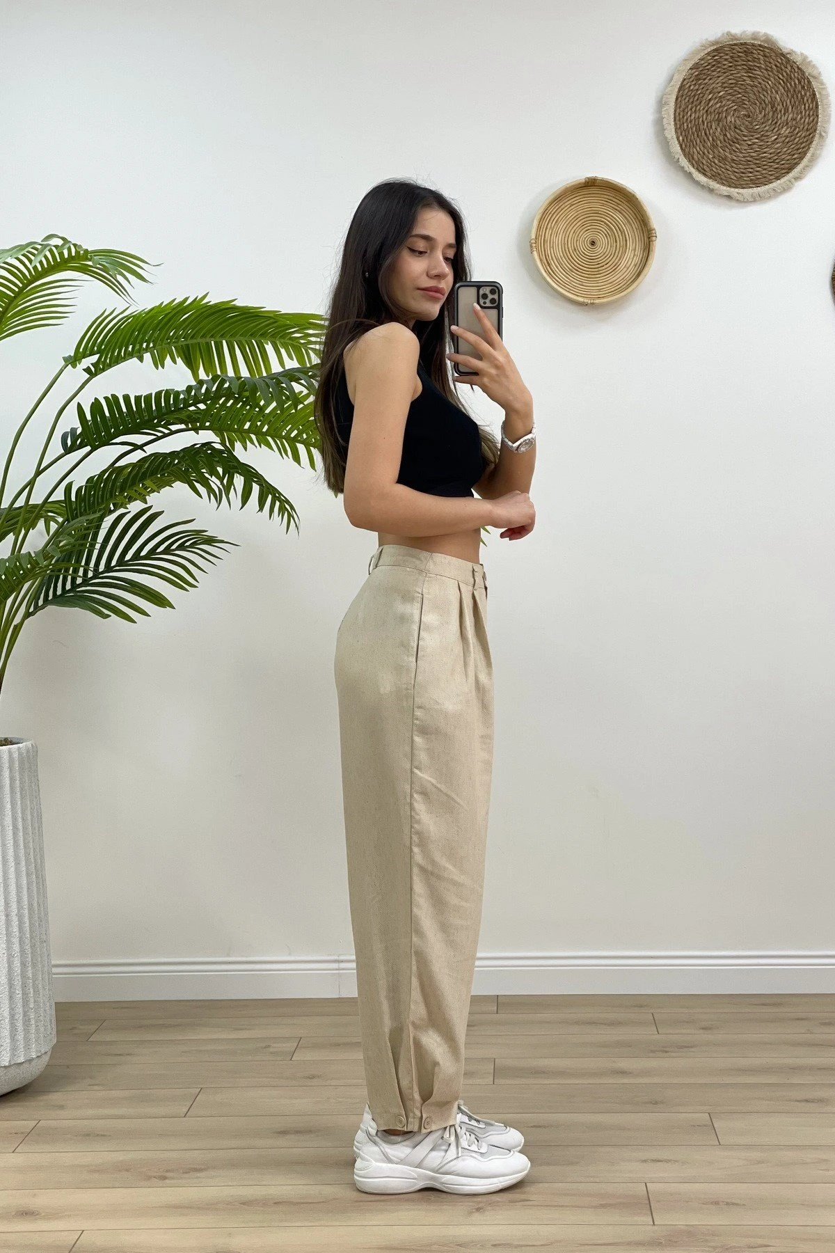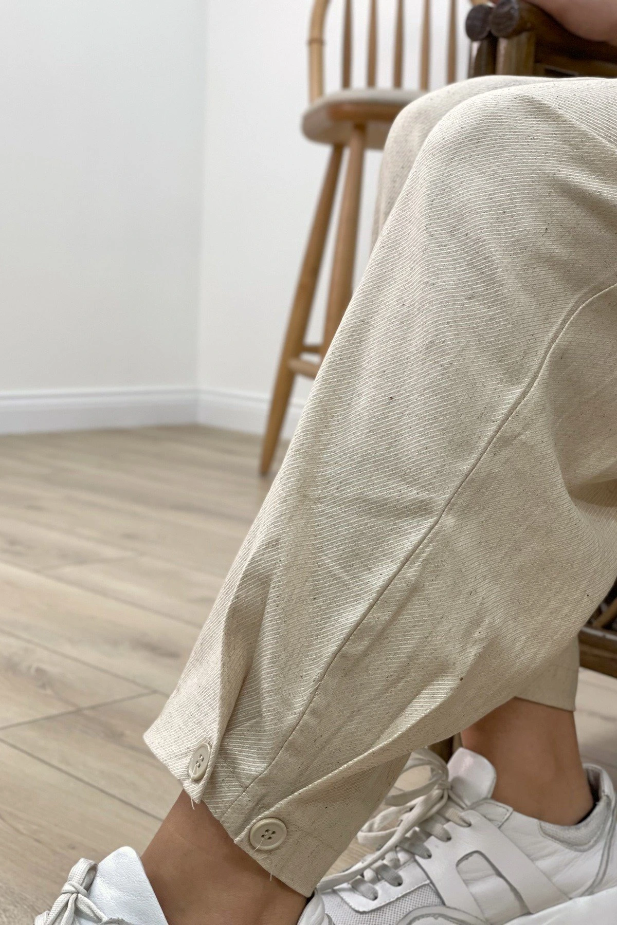 BİLEK DÜĞME BALON MODEL TENSEL PANTOLON – NATUREL