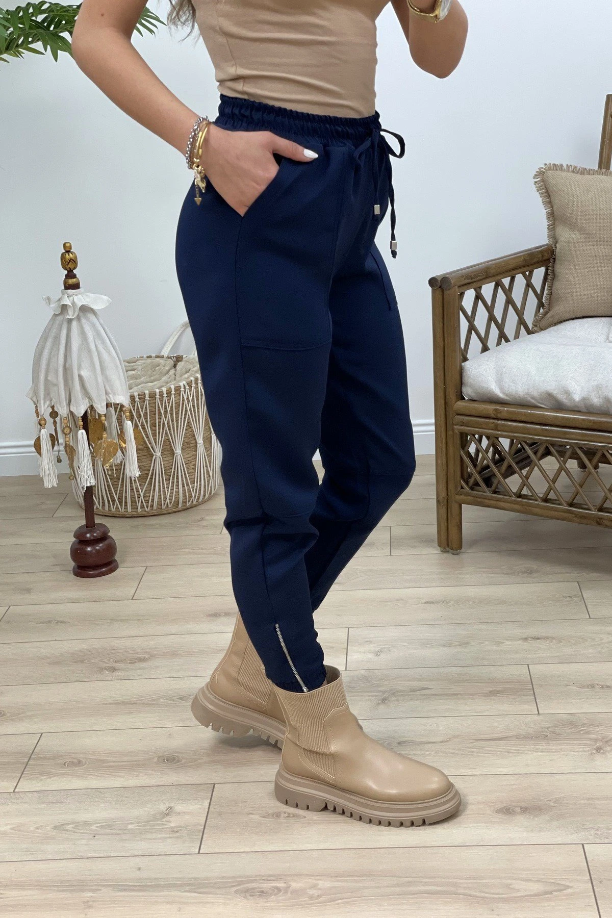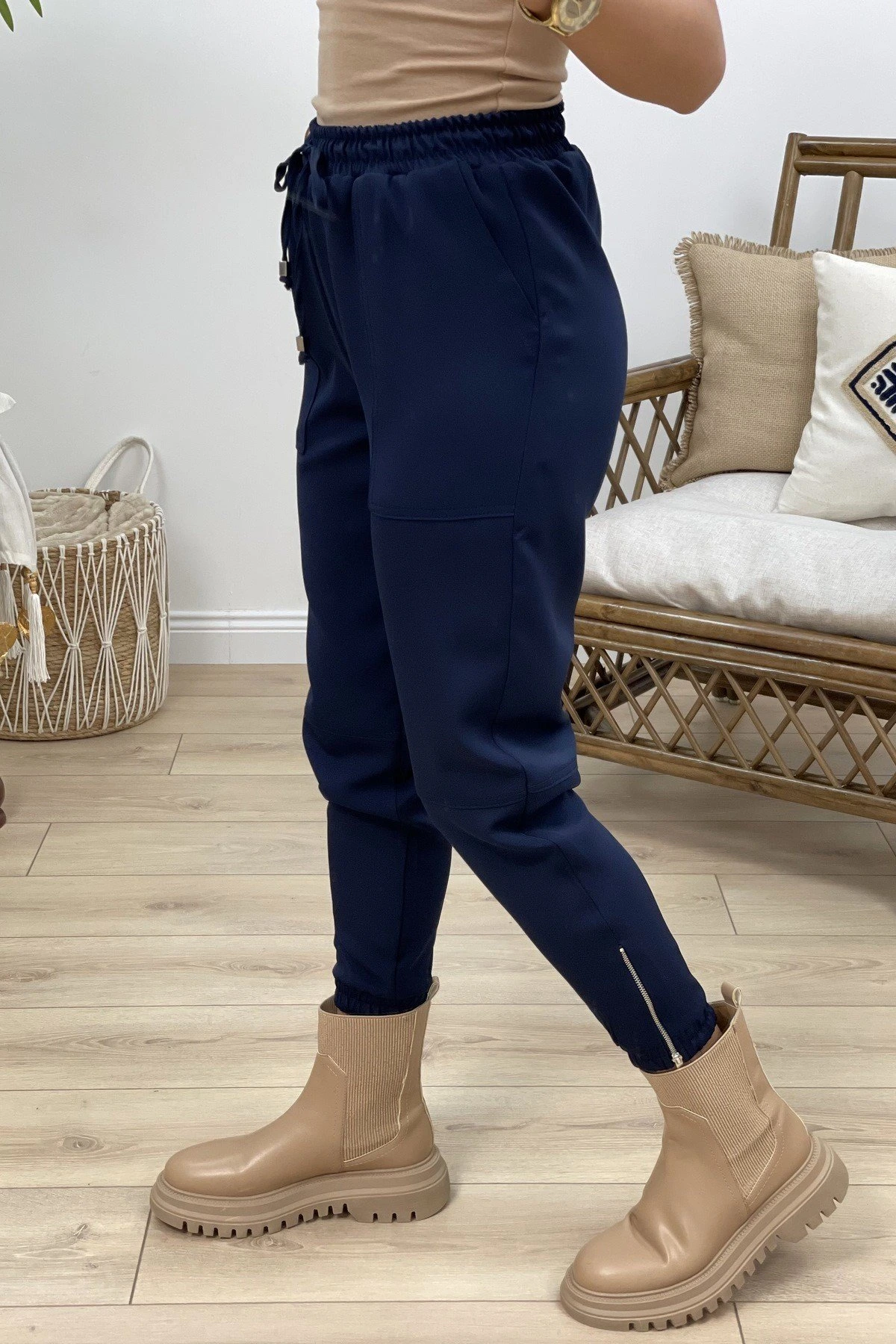 BİLEK LASTİK VE FERMUARLI PANTOLON – LACİVERT