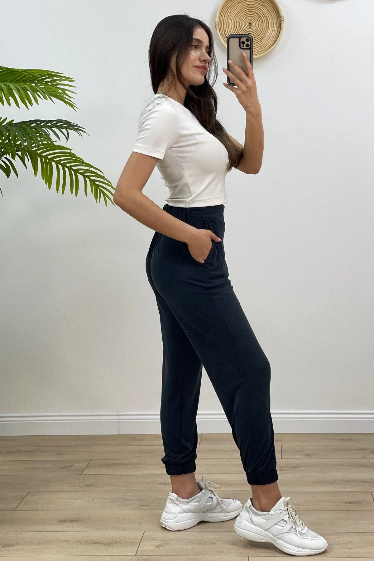 BİLEK LASTİKLİ MODAL PANTOLON – SİYAH