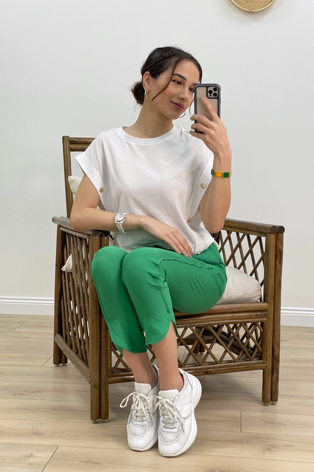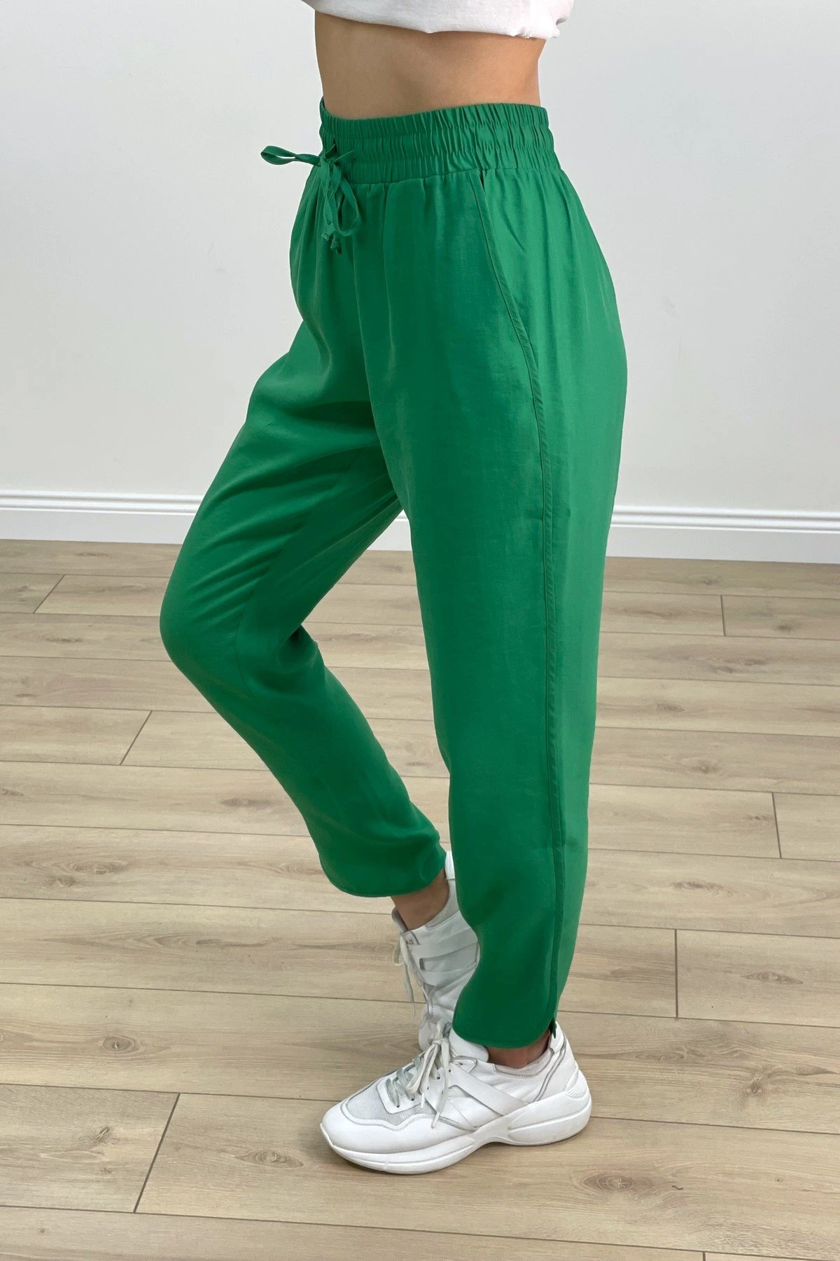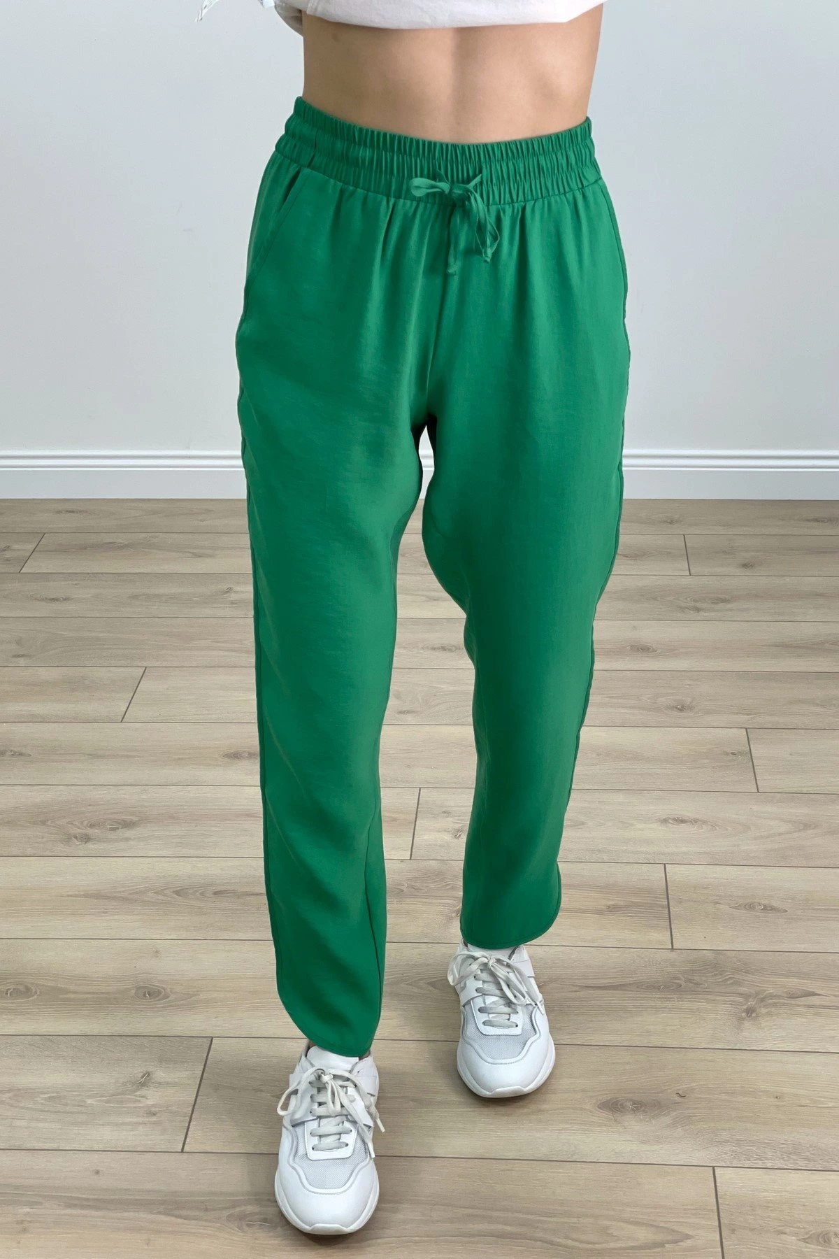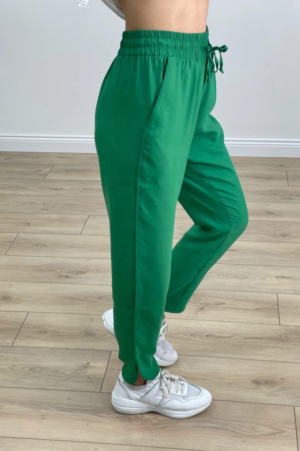 BİLEK YIRTMAÇ BİYELİ BAĞCIKLI MODAL PANTOLON – KOYU YEŞİL