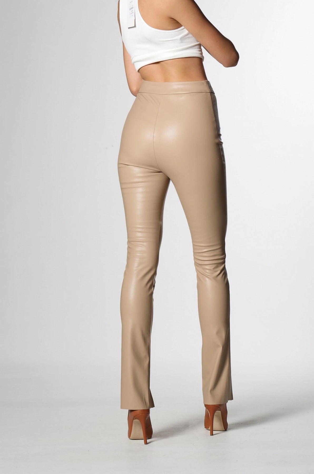BİLEK YIRTMAÇLI DERİ PANTOLON – BEJ