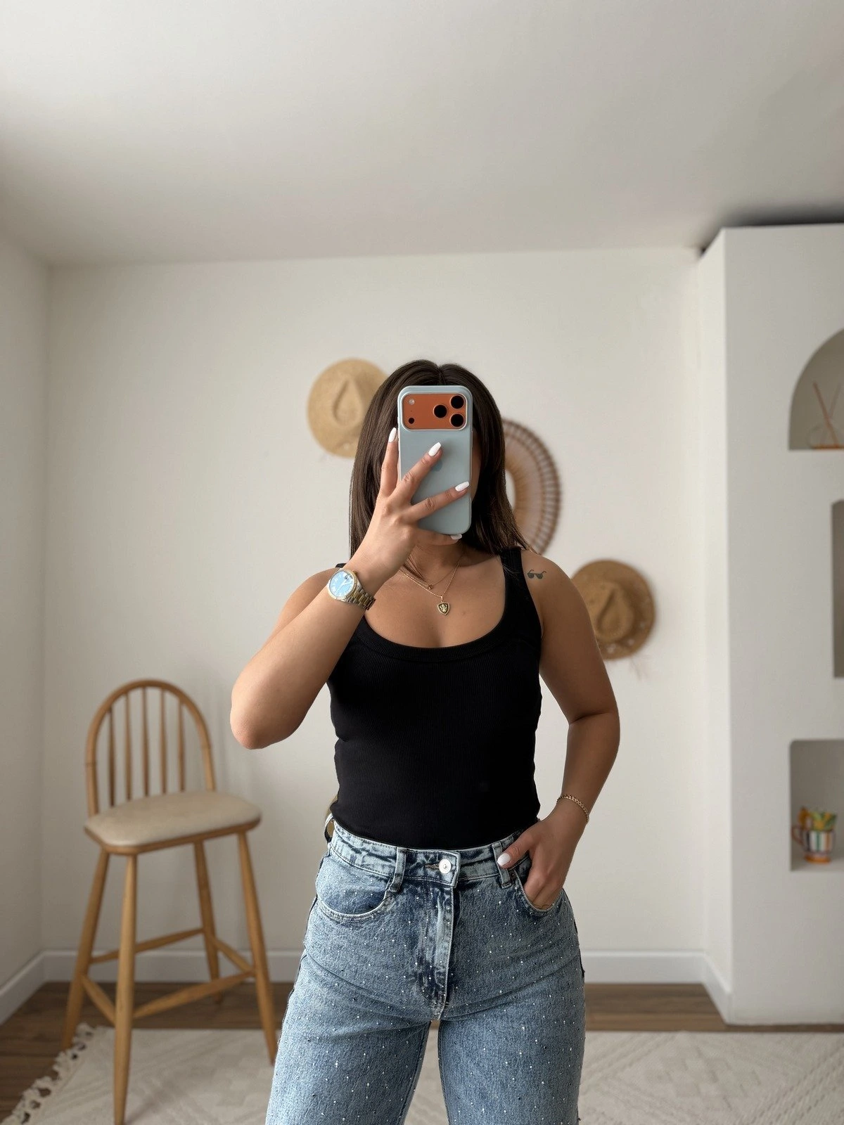 Modelin Üzerindeki Ürün, Serinin en küçük bedeni olan XS-S-26-34-36 Bedenleridir.