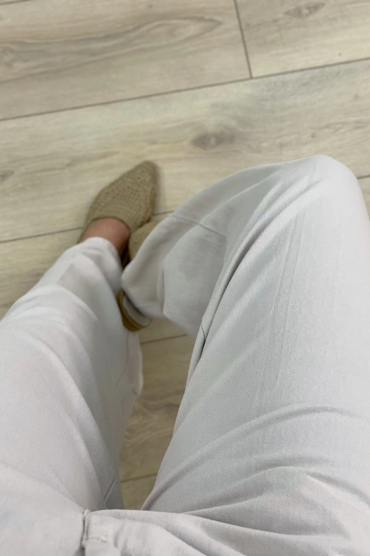 BORU PAÇA KEMERLİ PAMUK PANTOLON – TAŞ