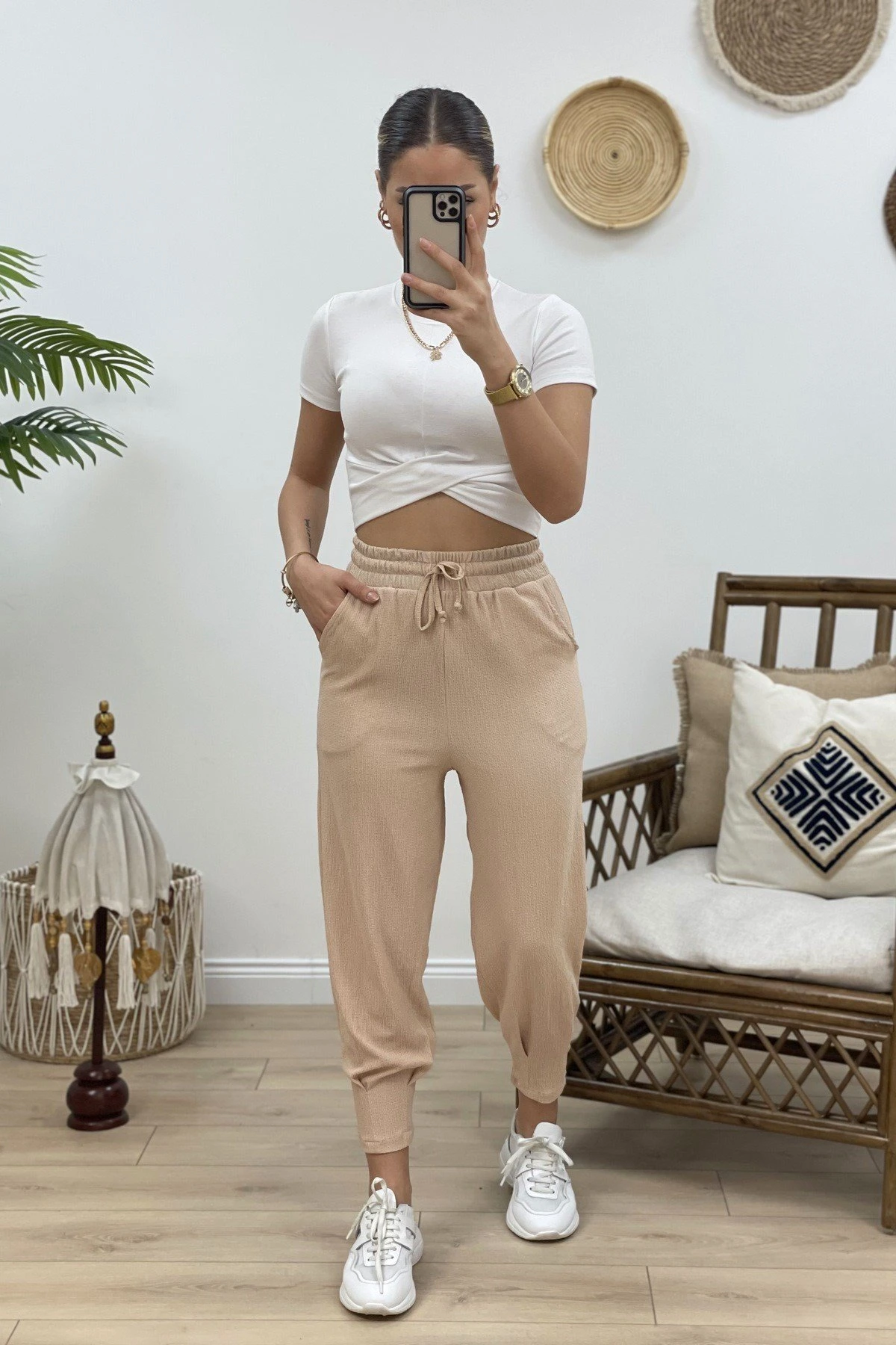 BÜRÜMCÜK BİLEK DİKİŞLİ RAHAT PANTOLON – TAŞ