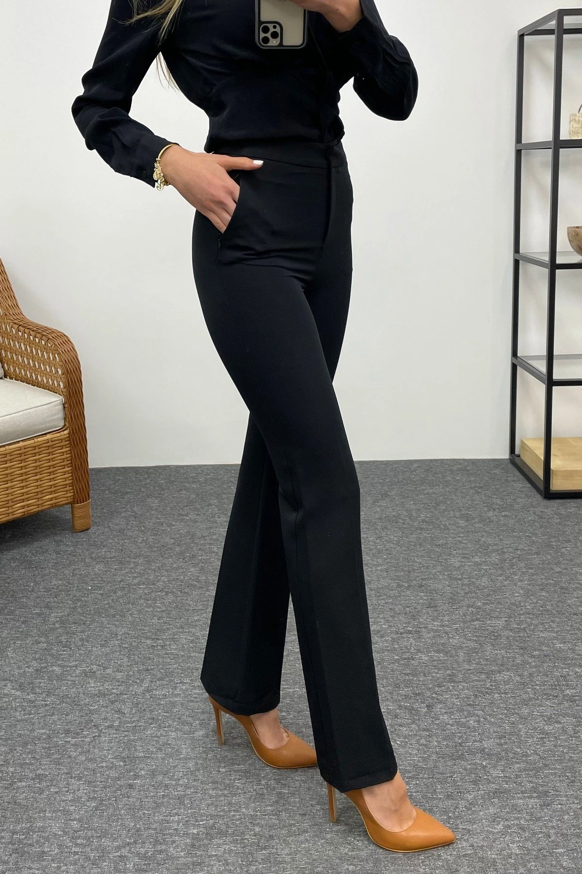 CEP FERMUAR DETAY KUMAŞ PANTOLON – SİYAH