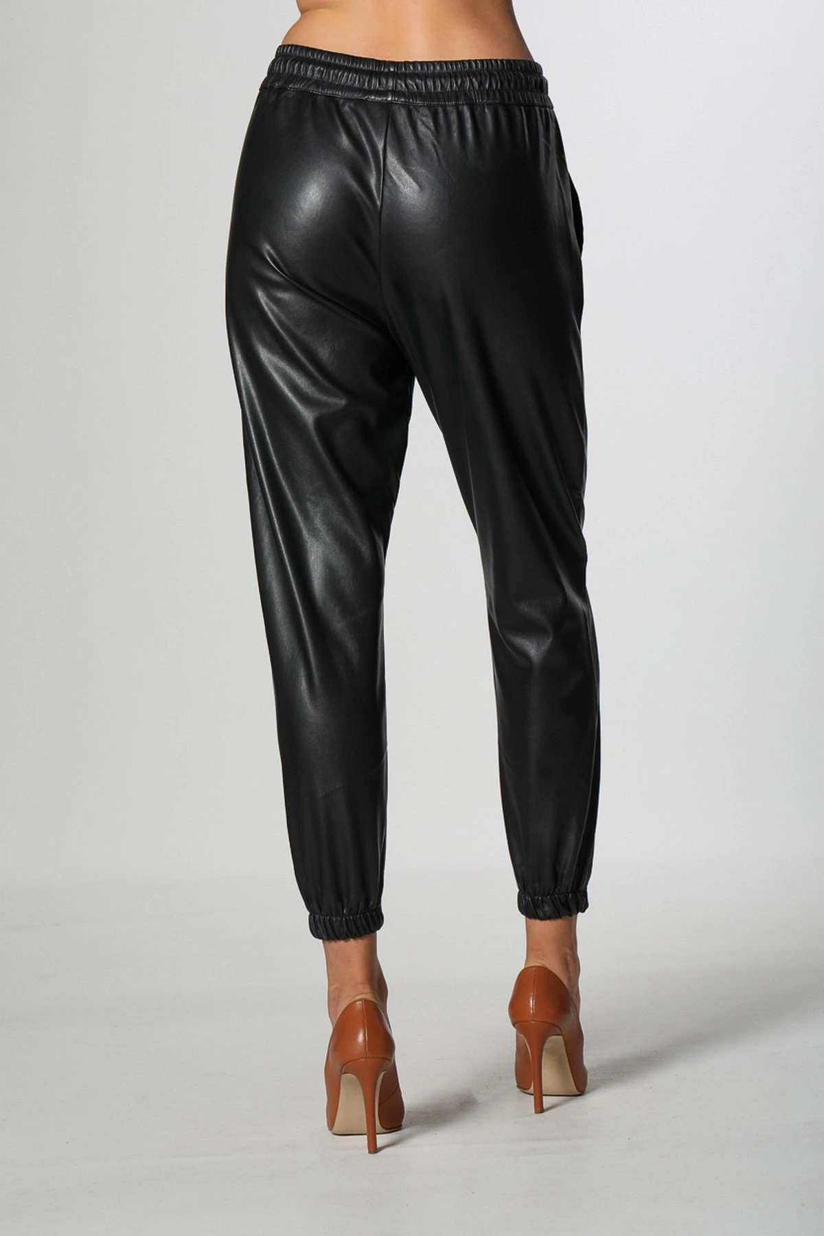 CEPLİ BAĞCIKLI DERİ PANTOLON – SİYAH
