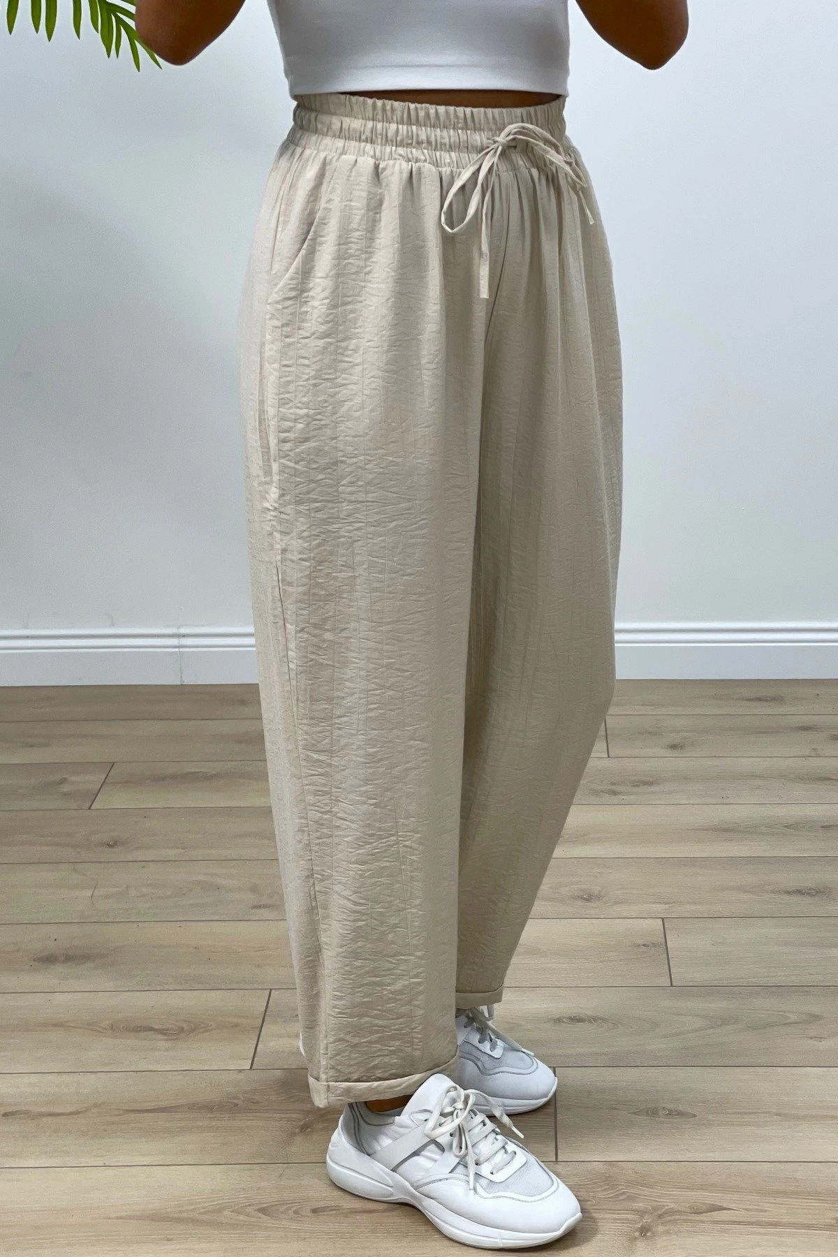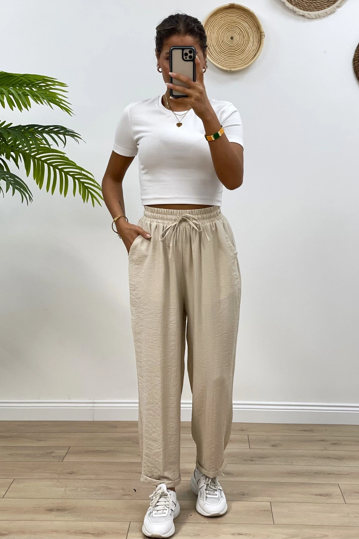 CEPLİ DUBLE PAÇA VİSKON PANTOLON – BEJ