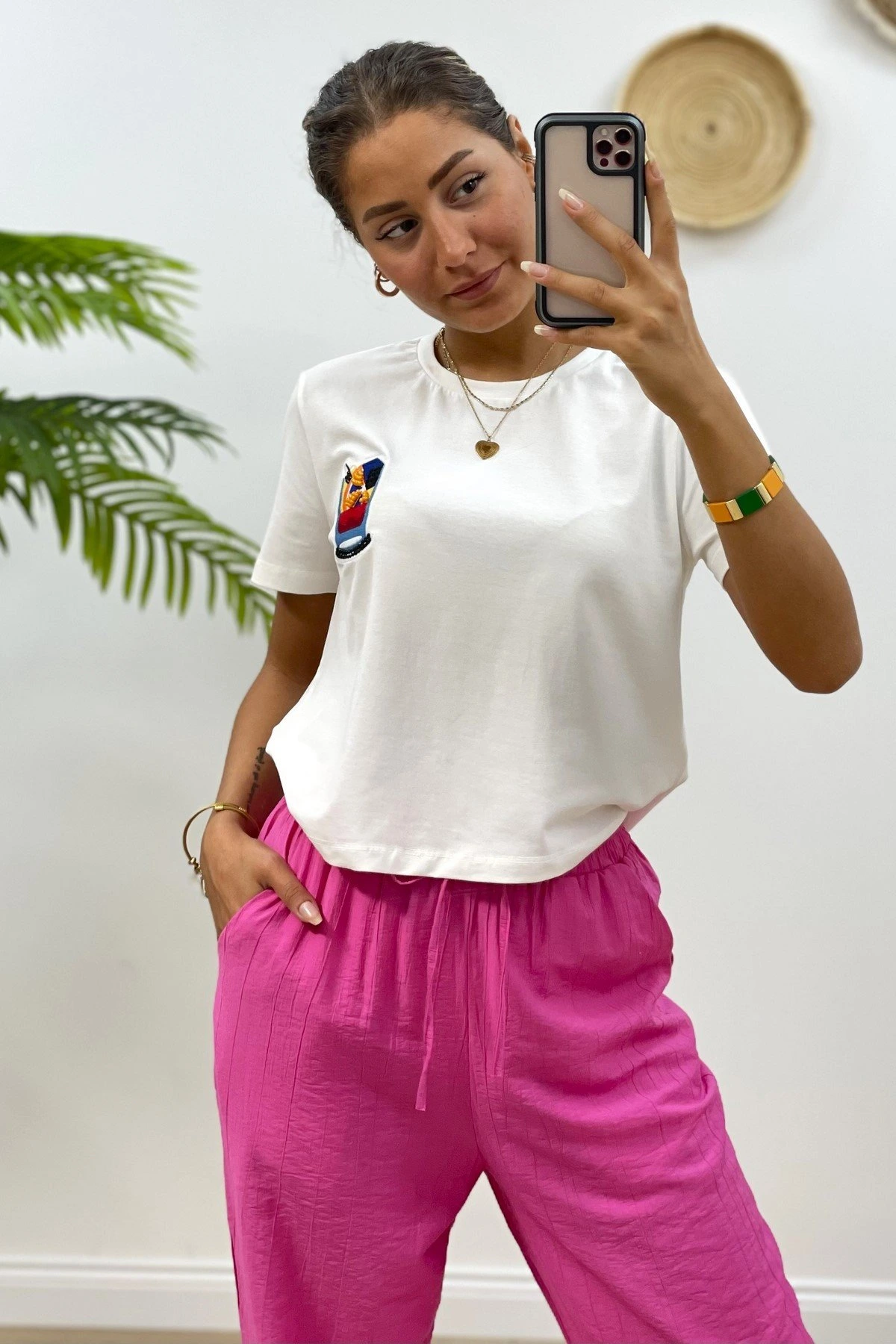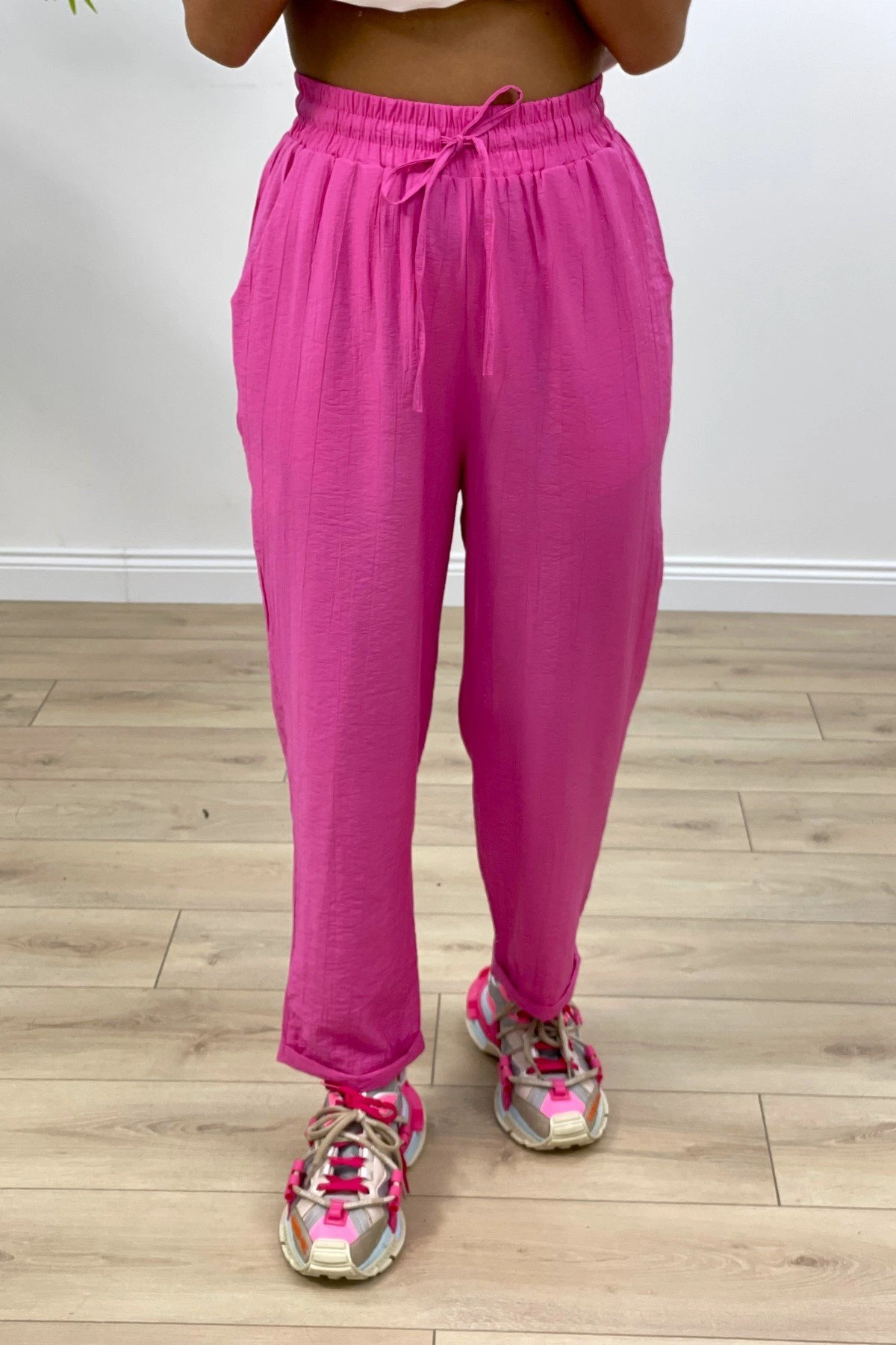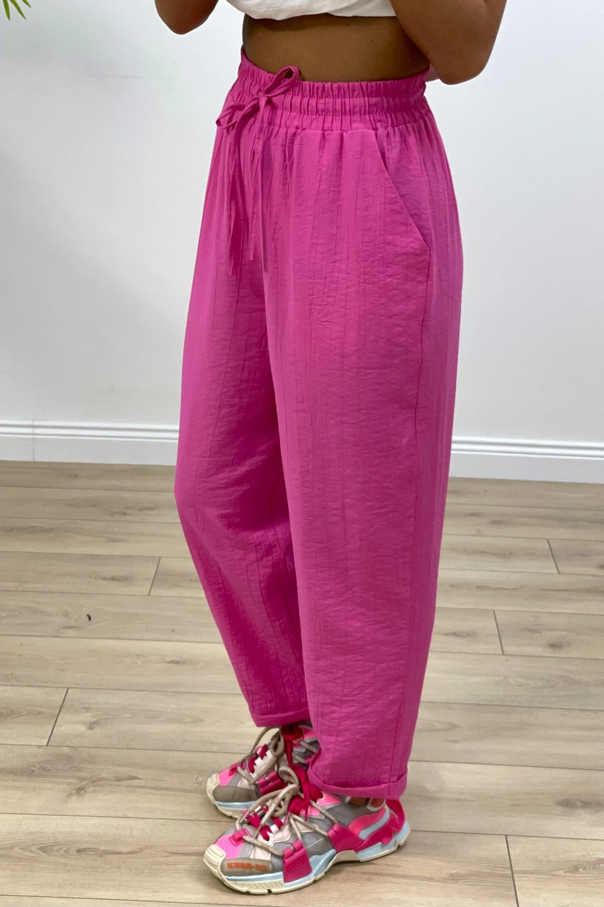 CEPLİ DUBLE PAÇA VİSKON PANTOLON – FUŞYA