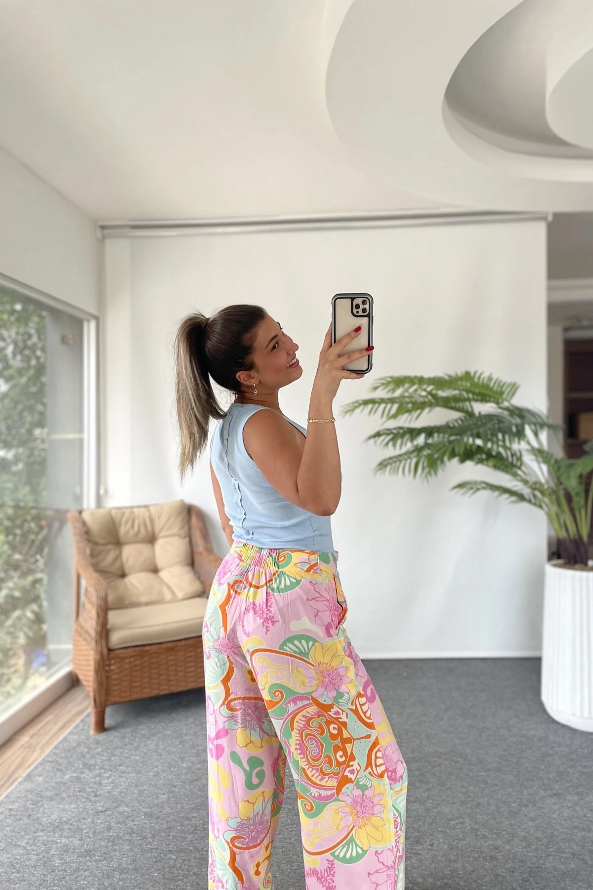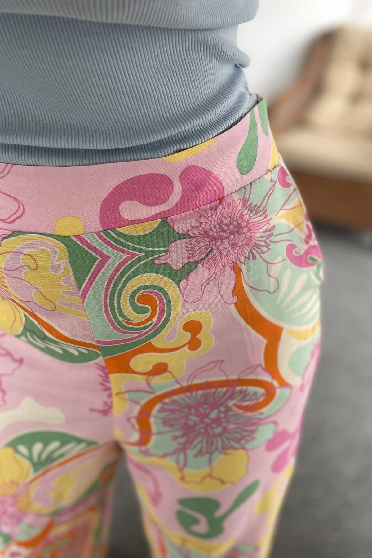 CEPLİ FERMUARLI DESENLİ VİSKON PANTOLON – PEMBE