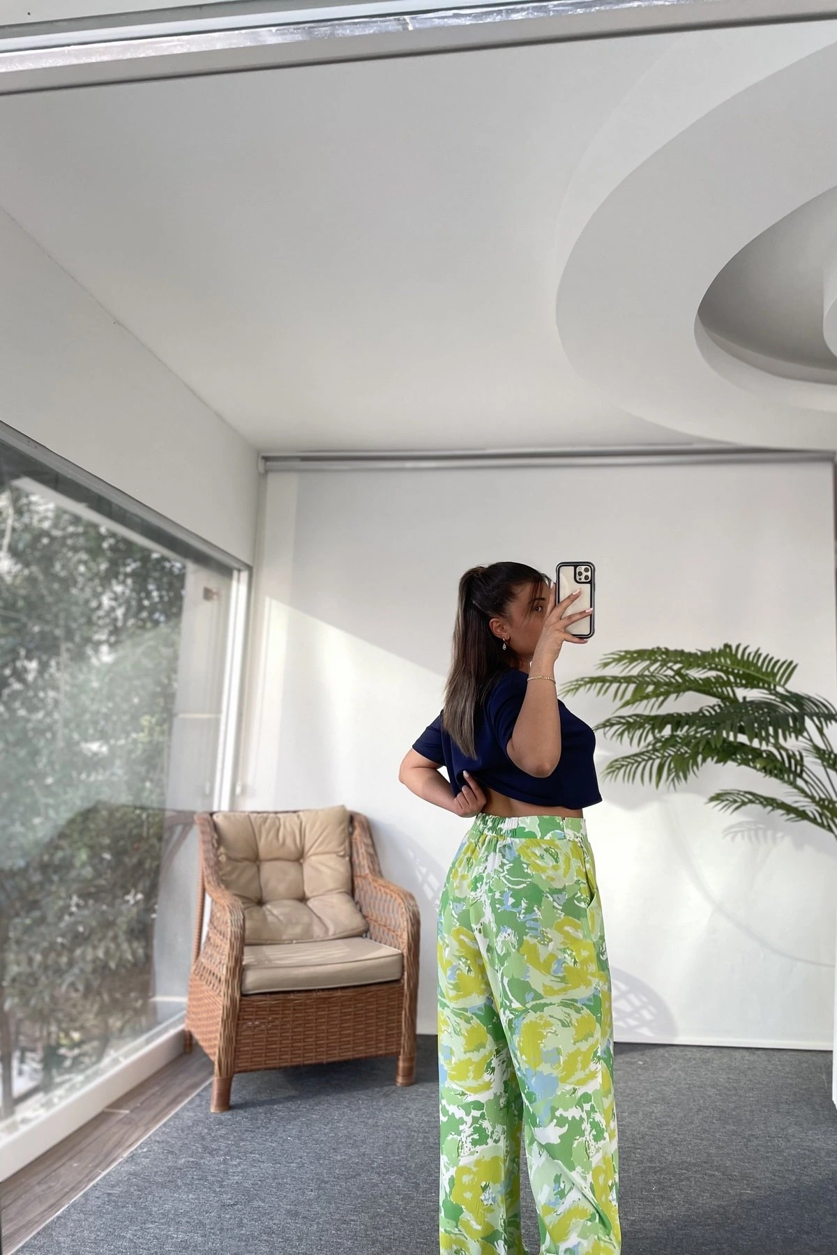CEPLİ YAN FERMUAR DESENLİ VİSKON PANTOLON – YEŞİL
