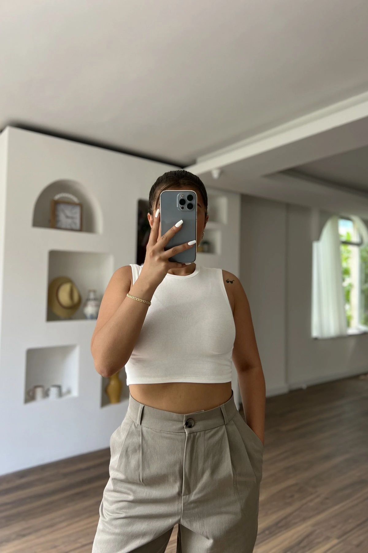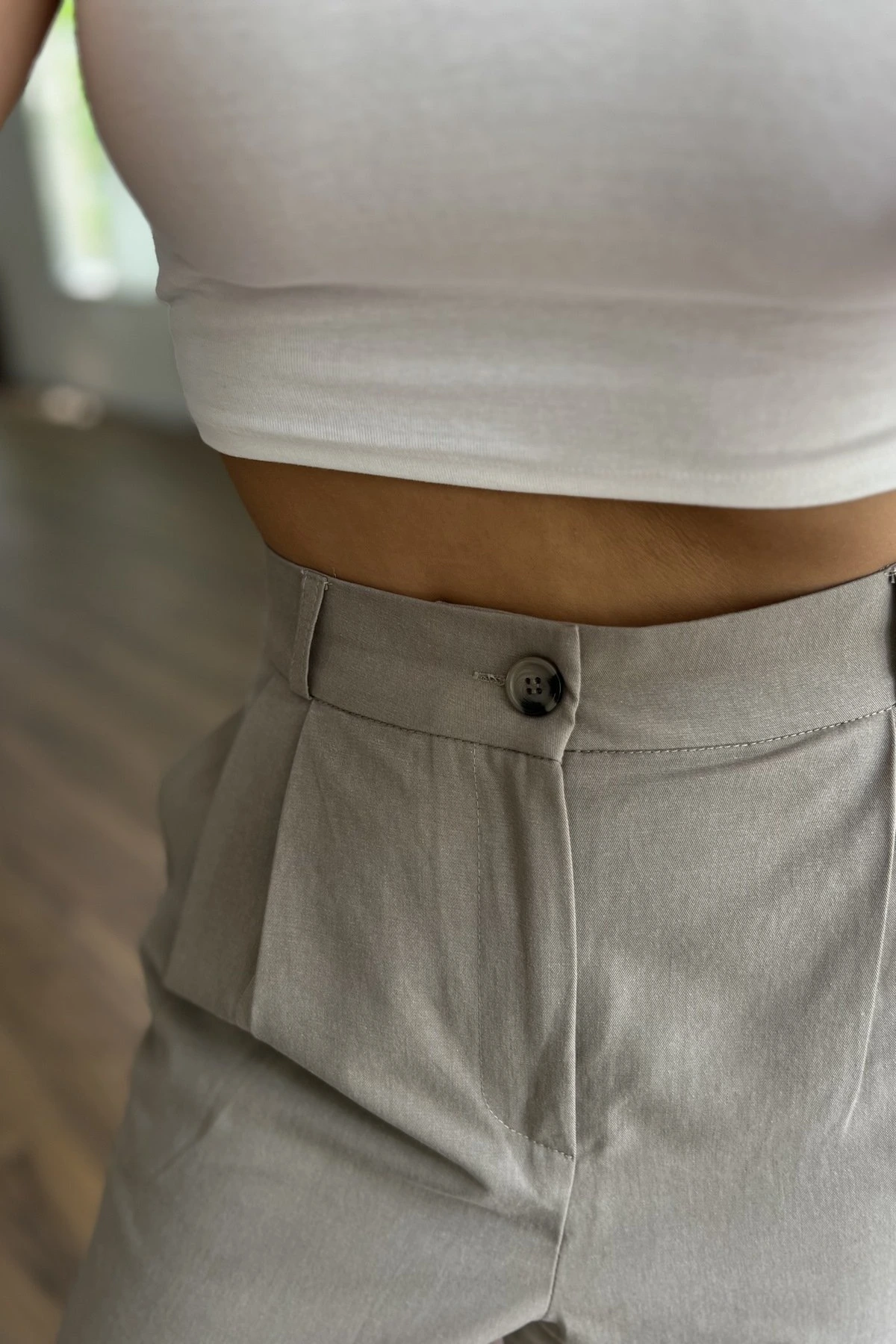 ÇİFT PİLE YÜKSEK BEL PAMUK PANTOLON - BEJ