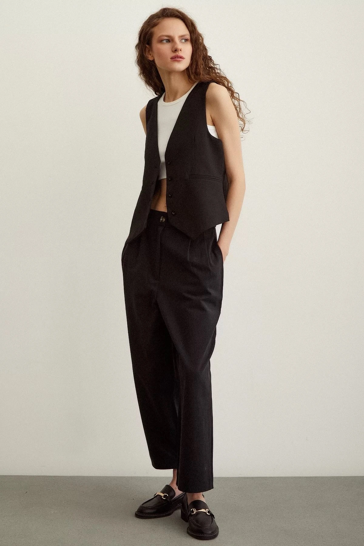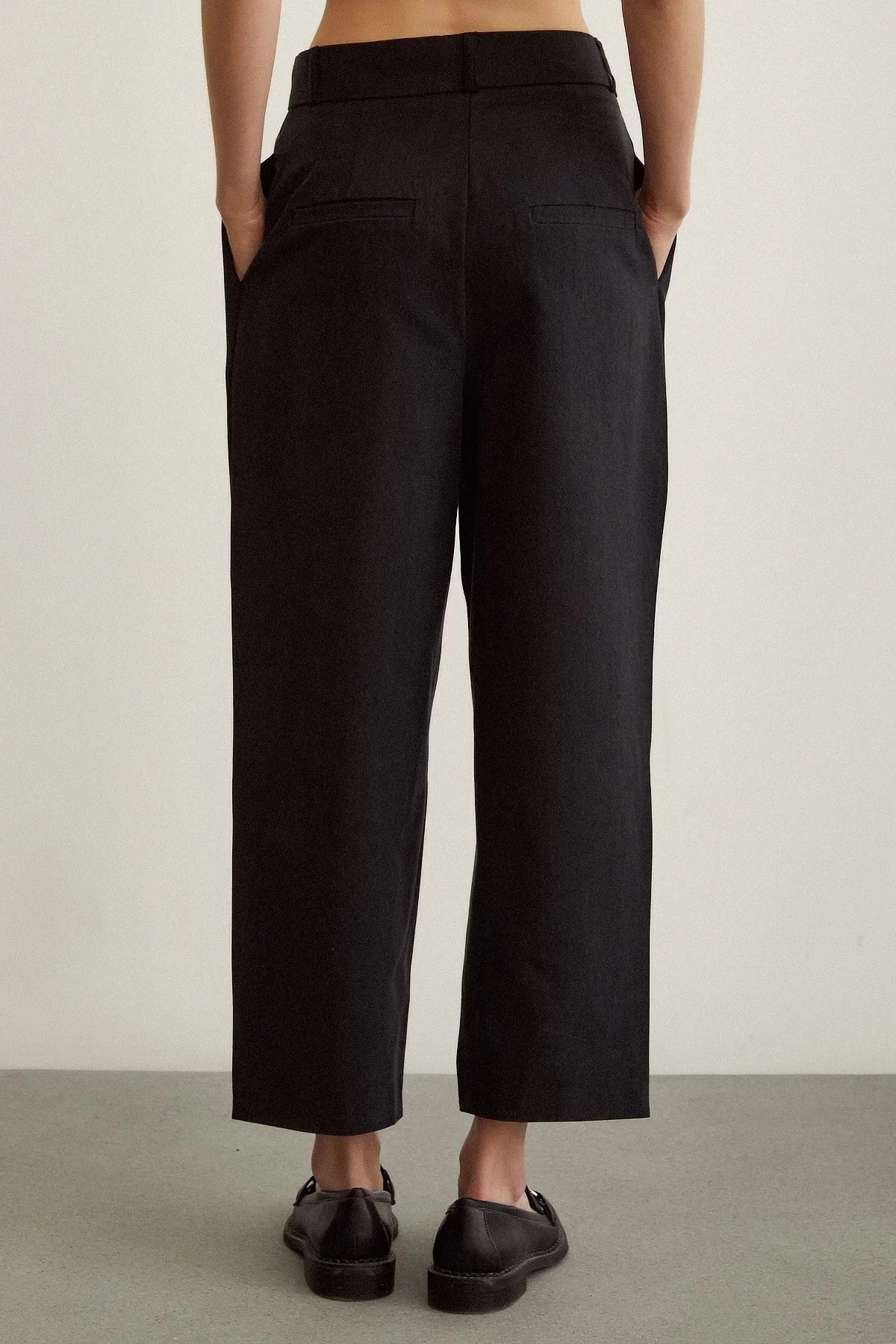 ÇİFT PİLE YÜKSEK BEL PAMUK PANTOLON – SİYAH