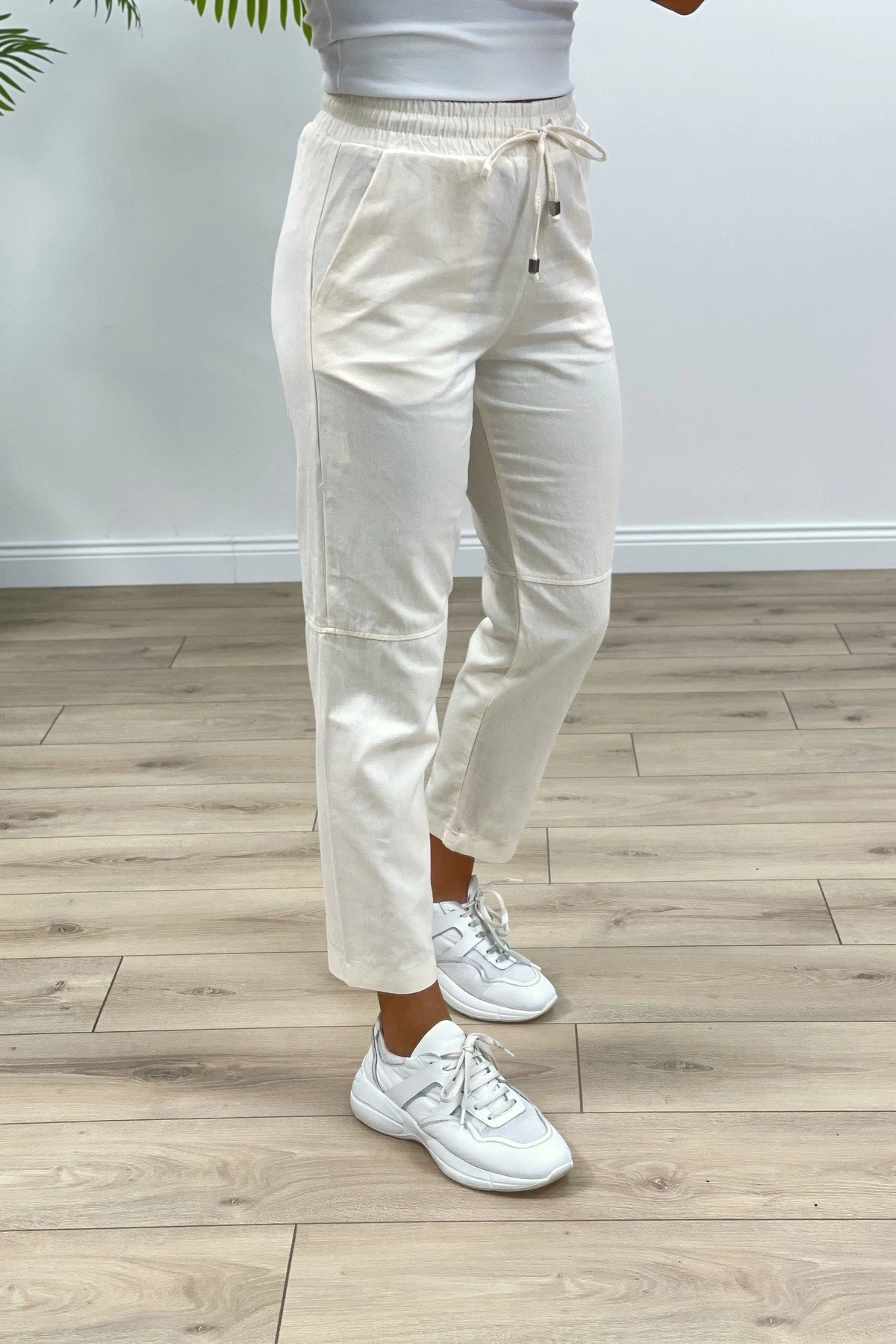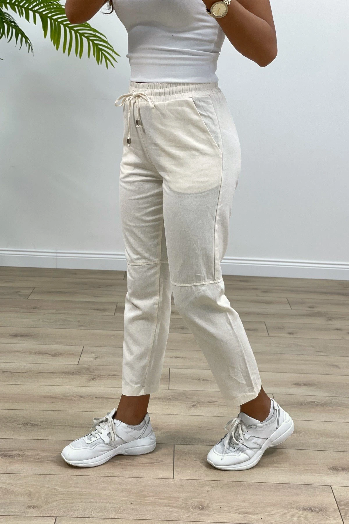 ÇİMALI GABARDİN DİZ DİKİŞLİ PANTOLON – BEJ
