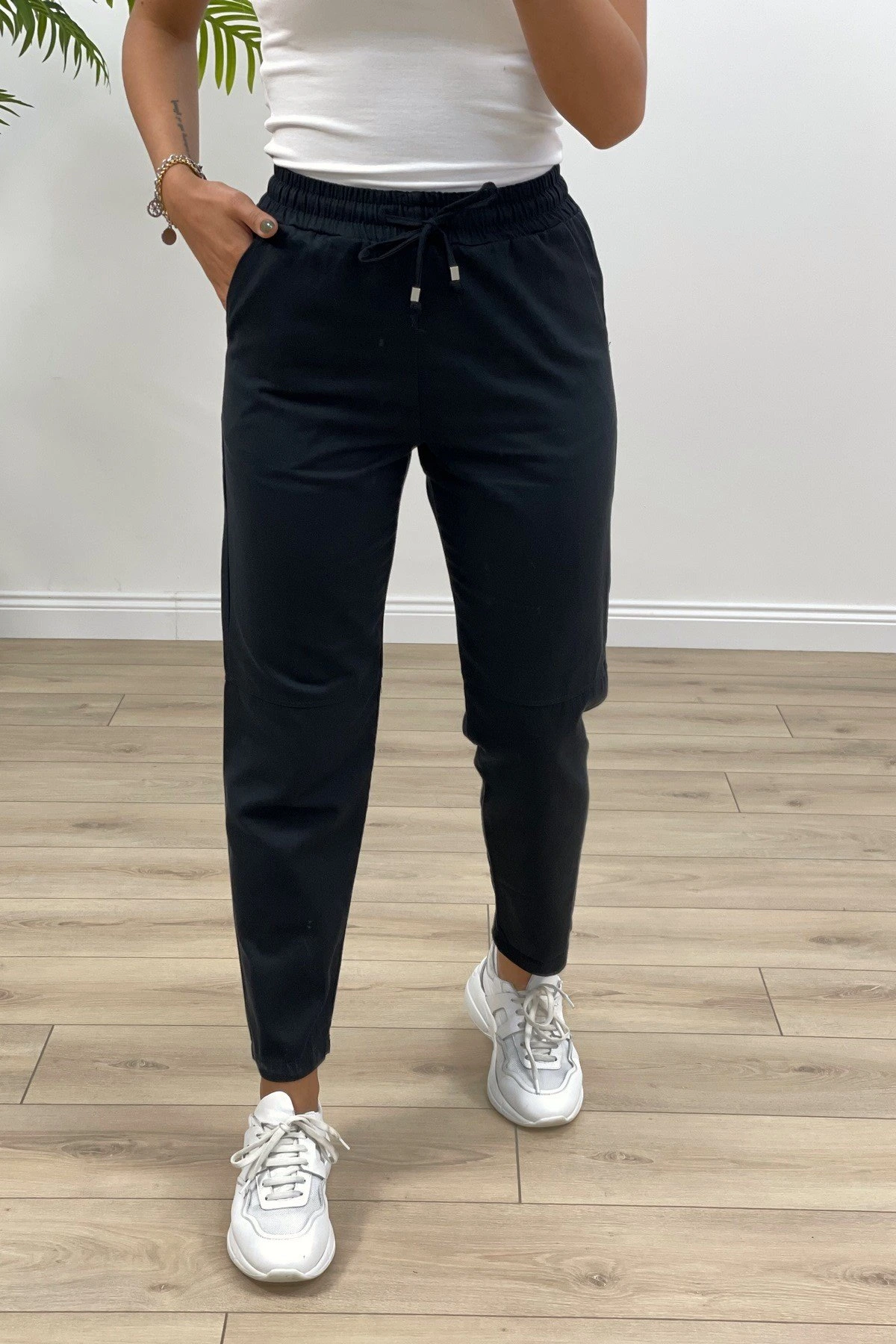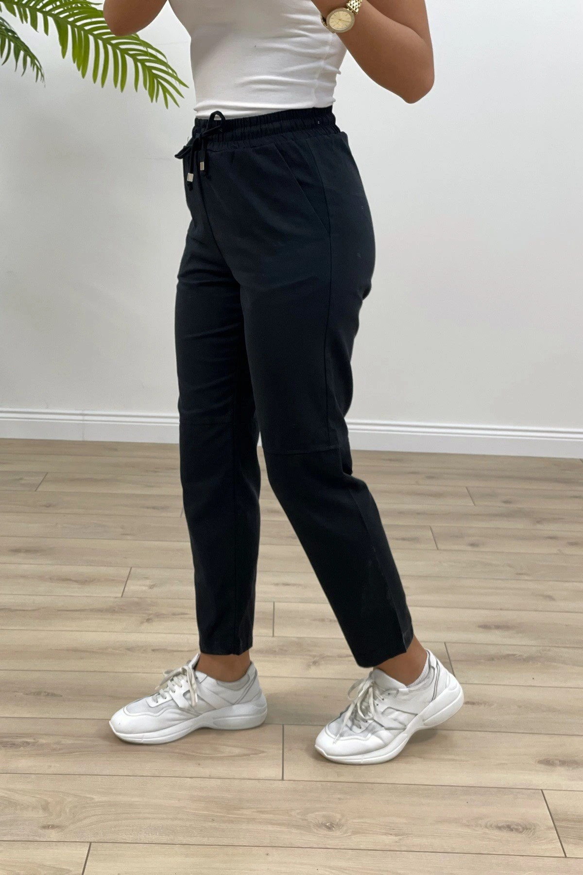 ÇİMALI GABARDİN DİZ DİKİŞLİ PANTOLON – SİYAH