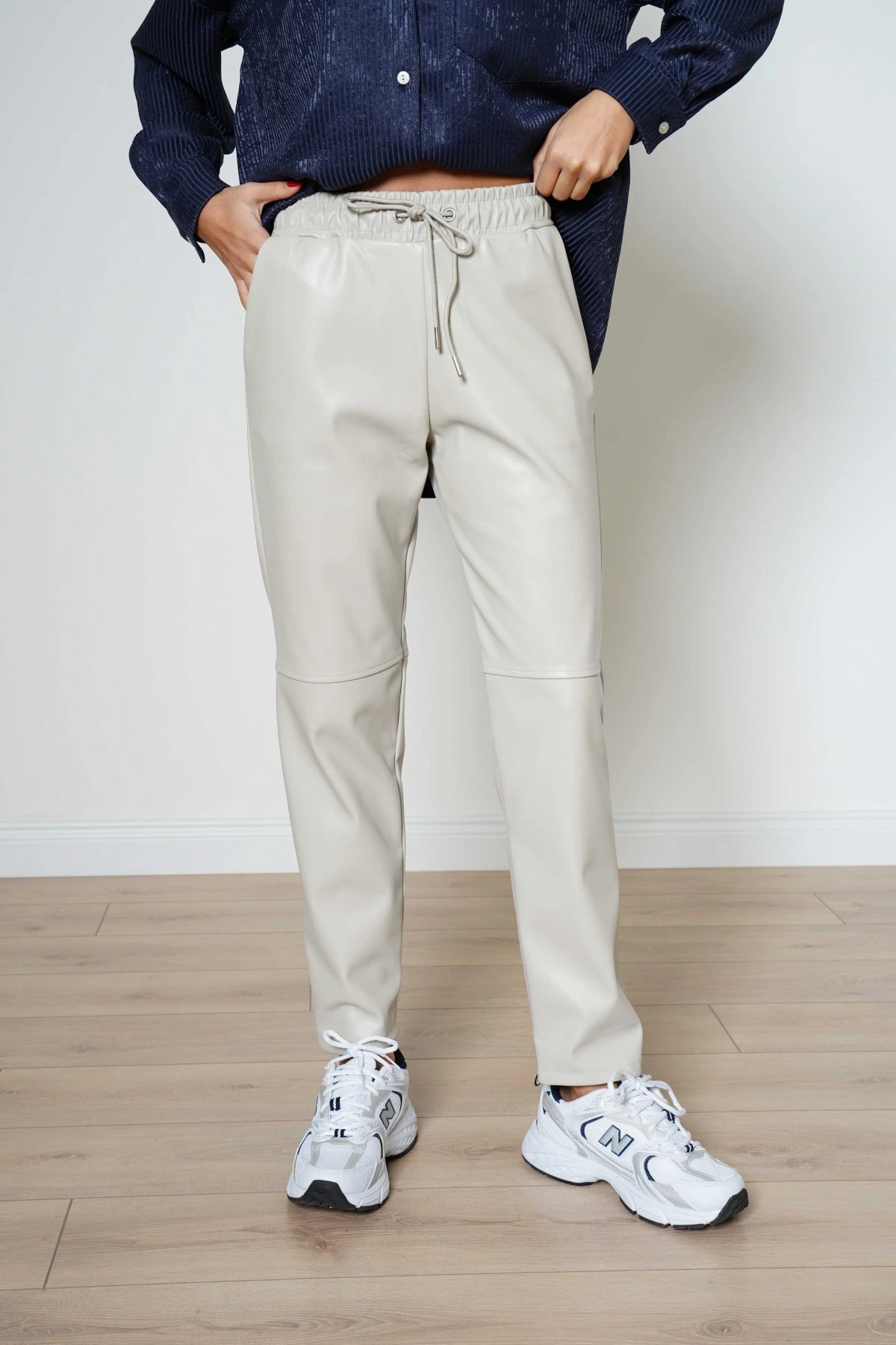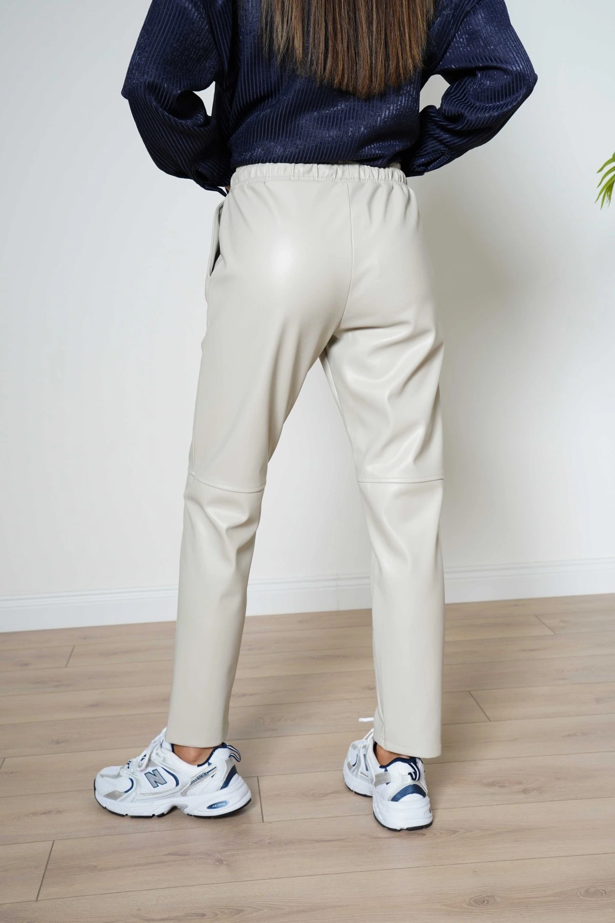 DİZ DİKİŞLİ BEL LASTİK CEPLİ DERİ PANTOLON – AÇIK TAŞ