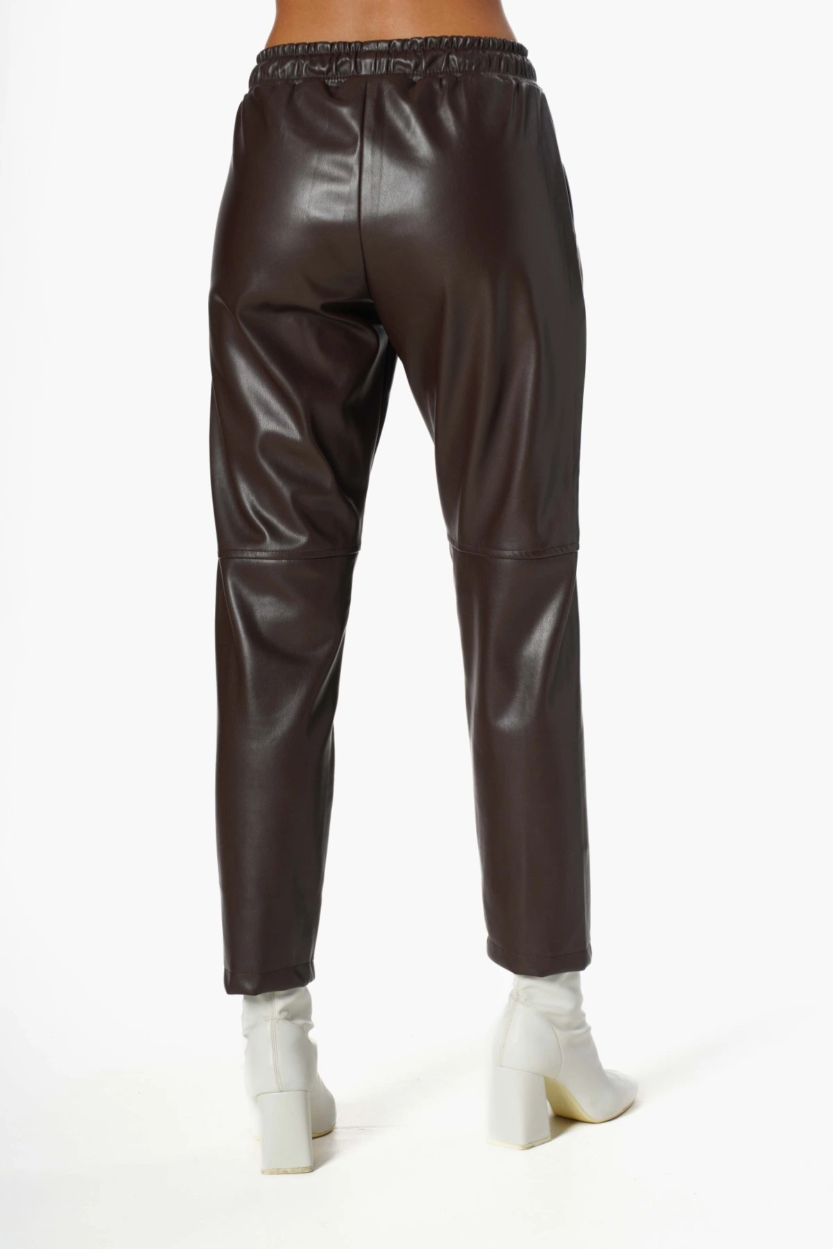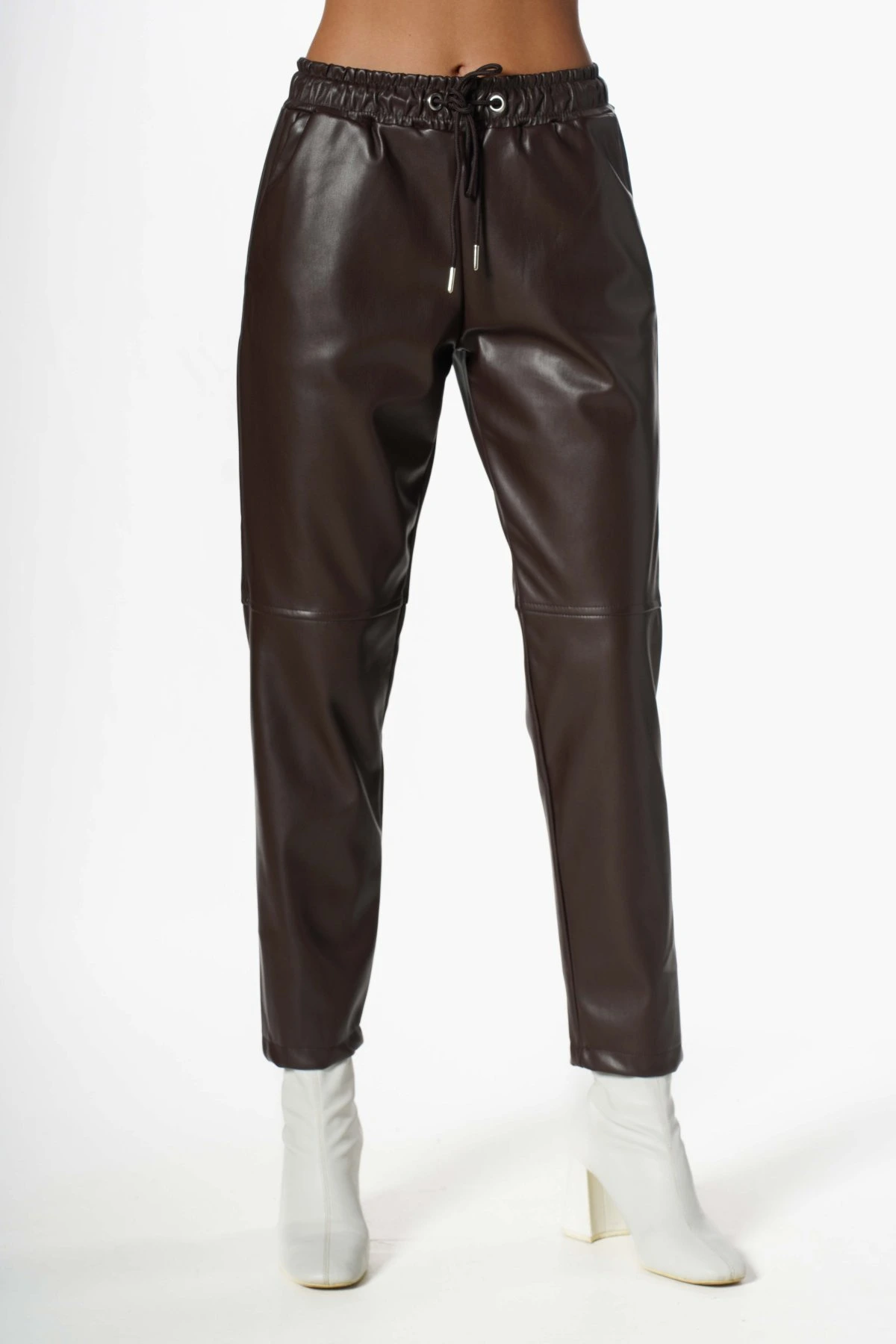 DİZ DİKİŞLİ BEL LASTİK CEPLİ DERİ PANTOLON – KAHVE