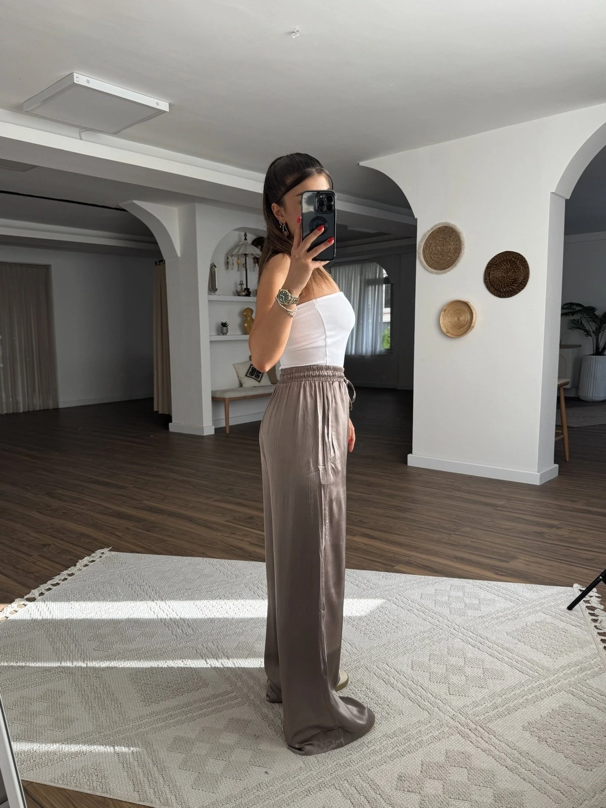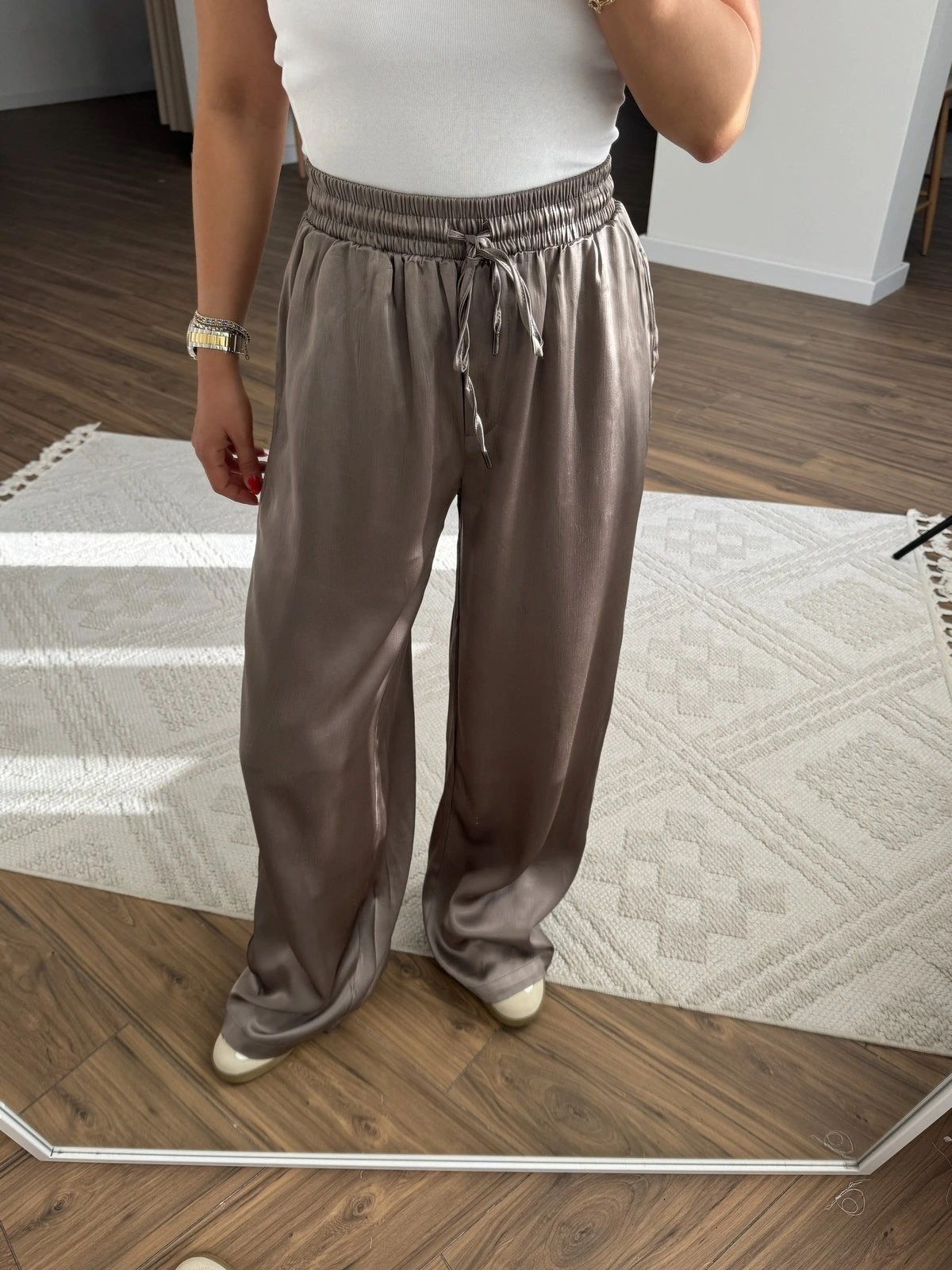 DOKULU CEPLİ BEL LASTİK VİSKON RAHAT PANTOLON – VİZON