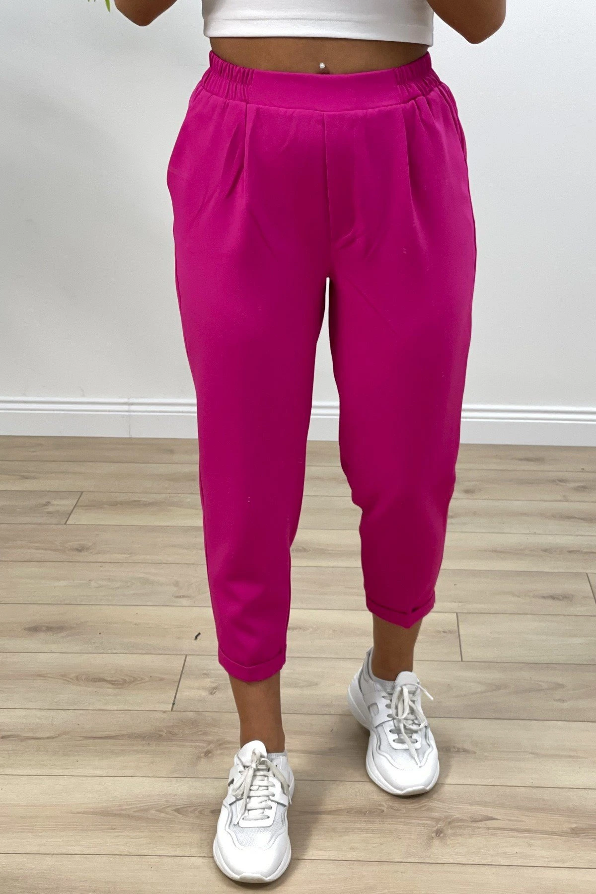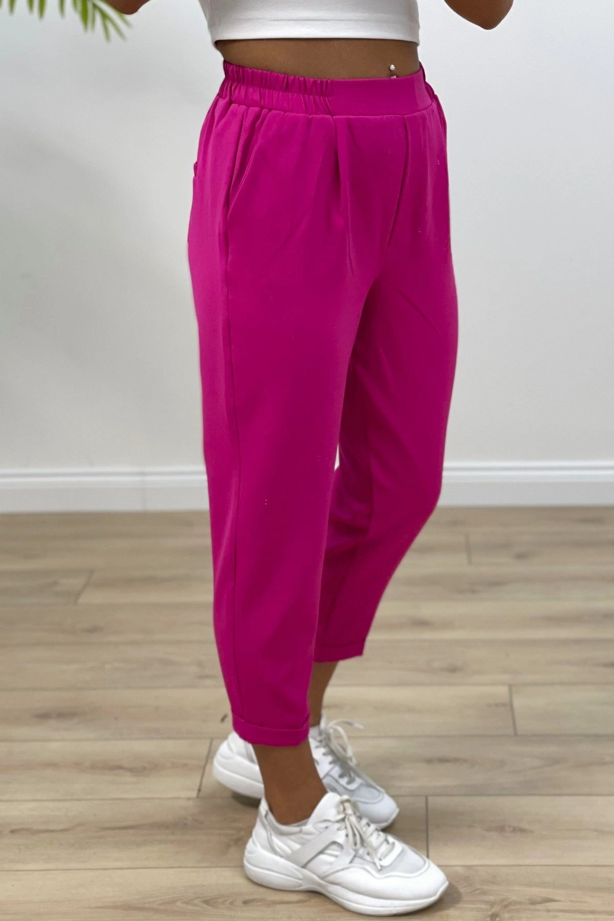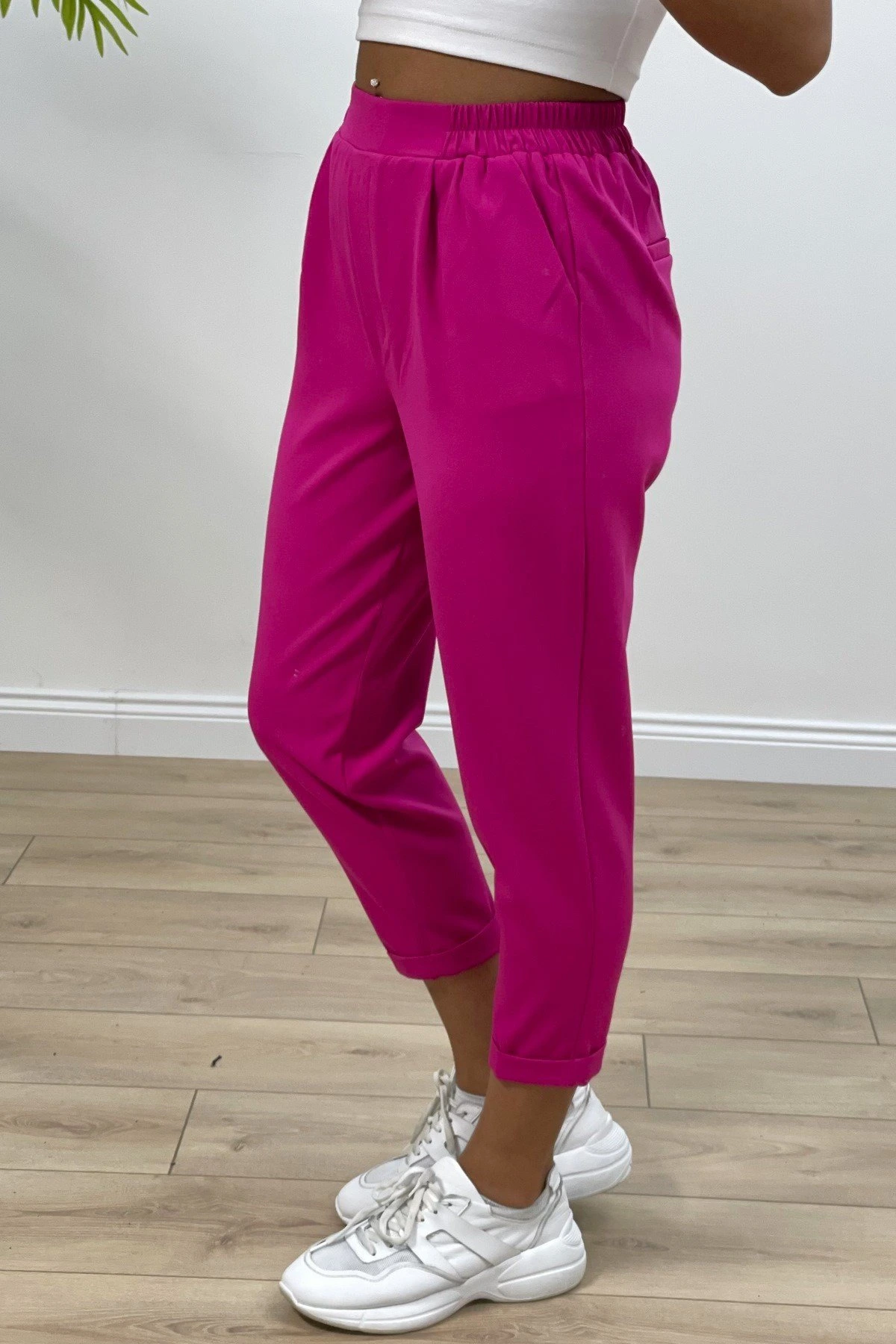 DUBLE PAÇA ARKA BEL LASTİK KUMAŞ PANTOLON – FUŞYA