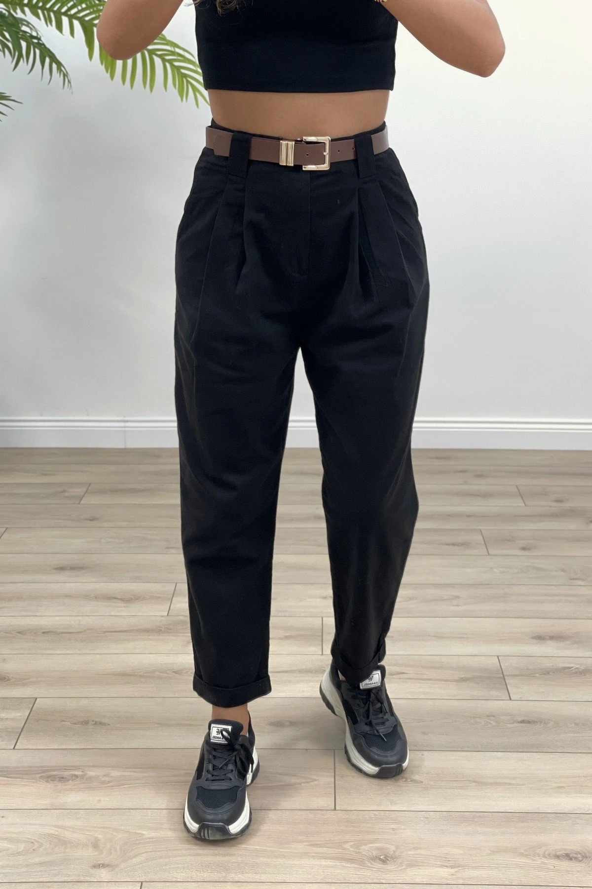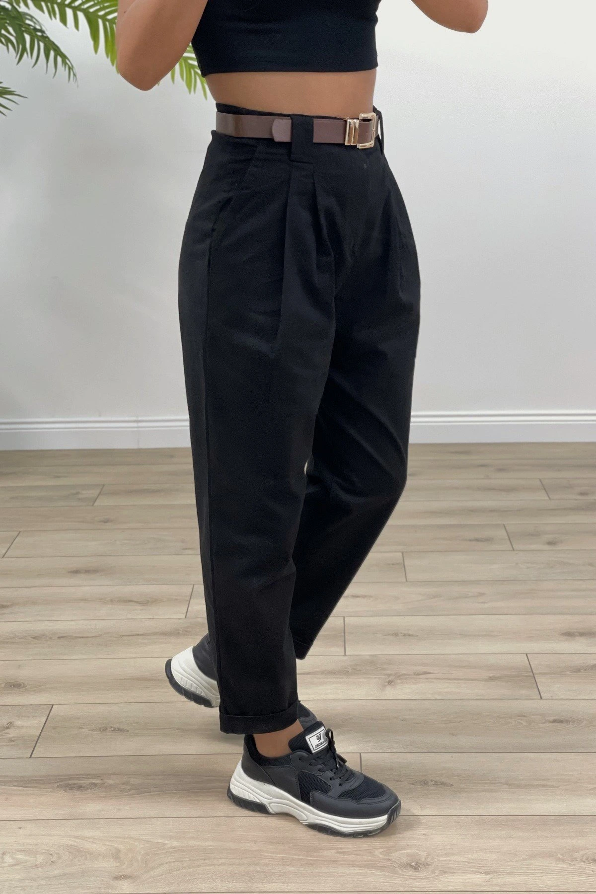 DUBLE PAÇA BALON MODEL KANVAS PANTOLON – SİYAH