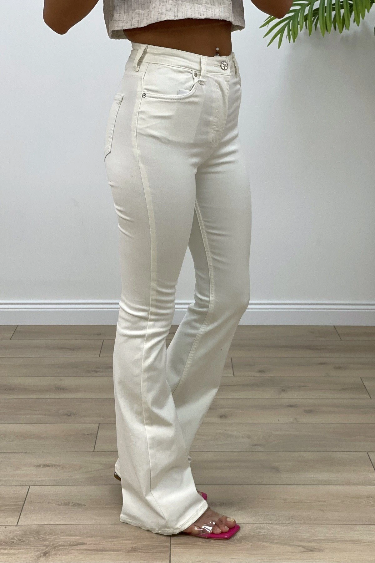 FULL LİKRA İSPANYOL YÜKSEK BEL PANTOLON – KREM