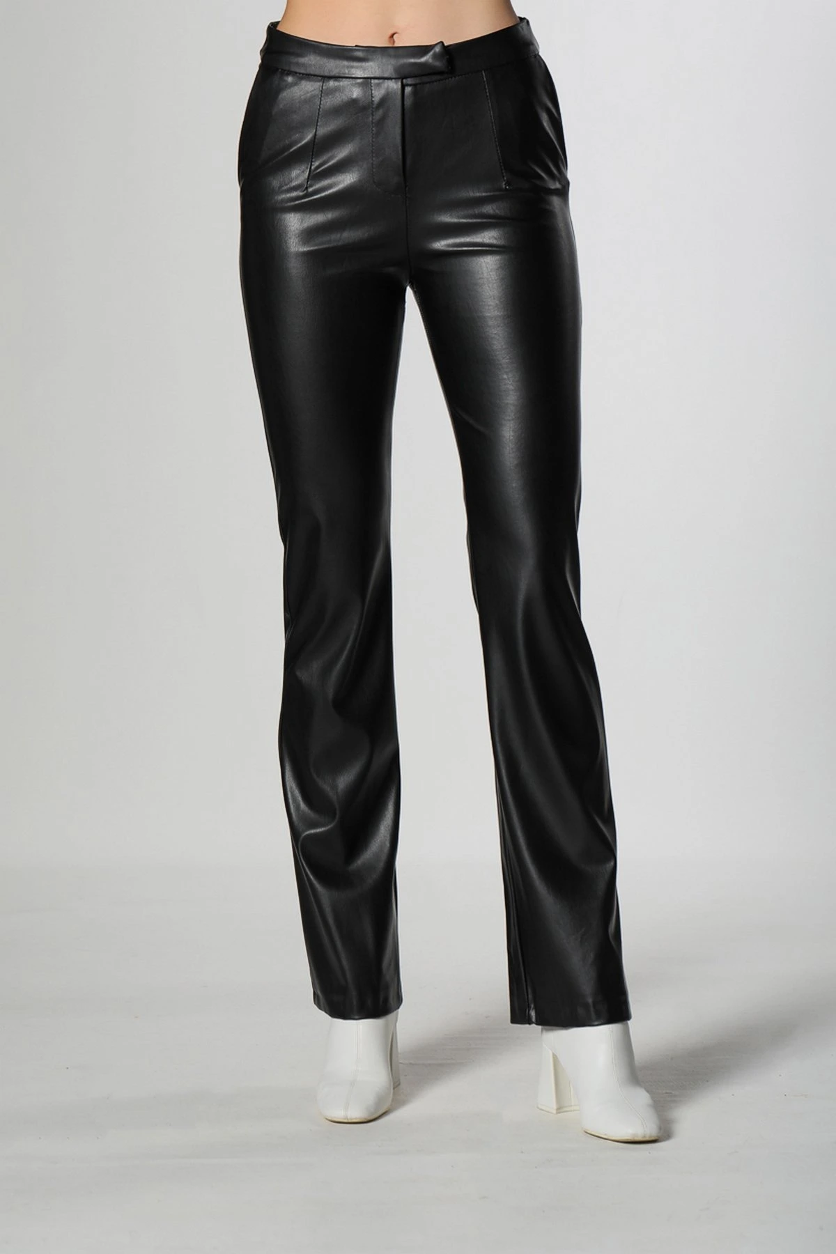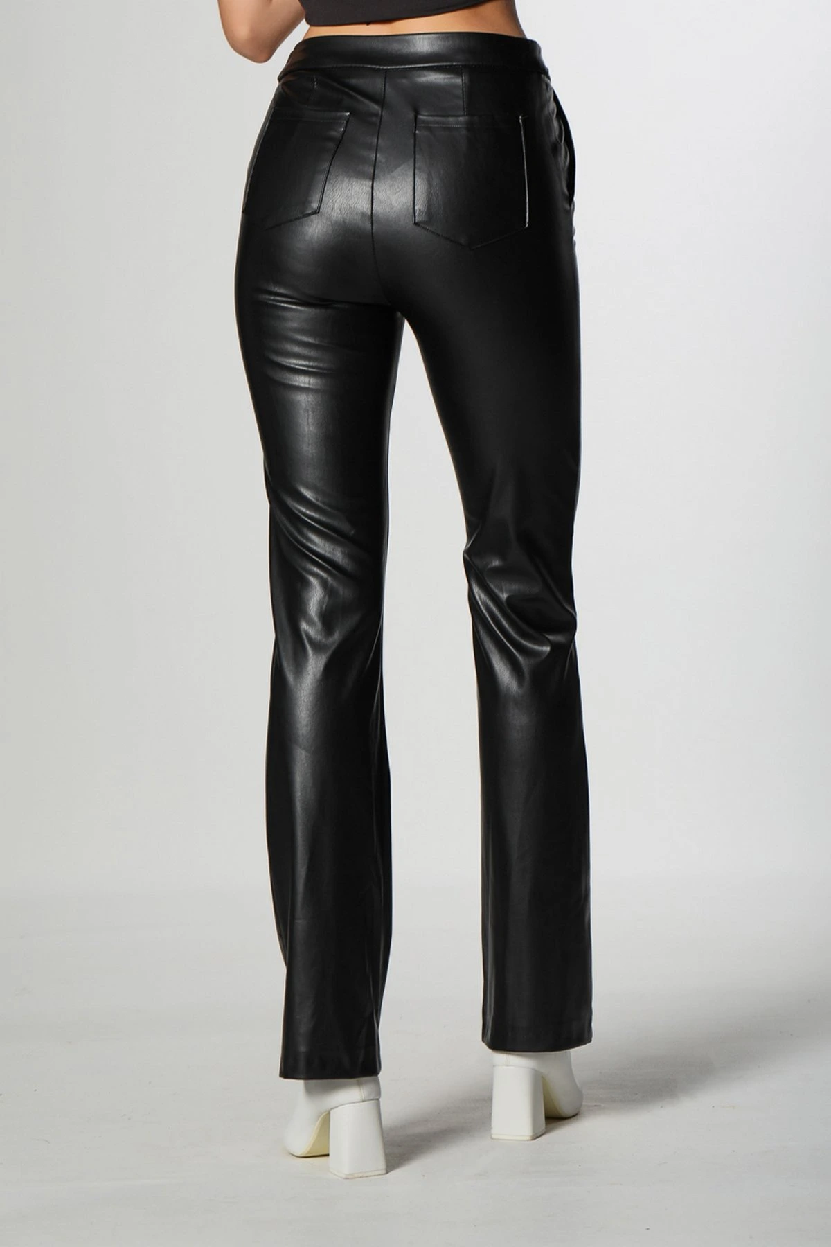 İSPANYOL PAÇA DERİ PANTOLON – SİYAH