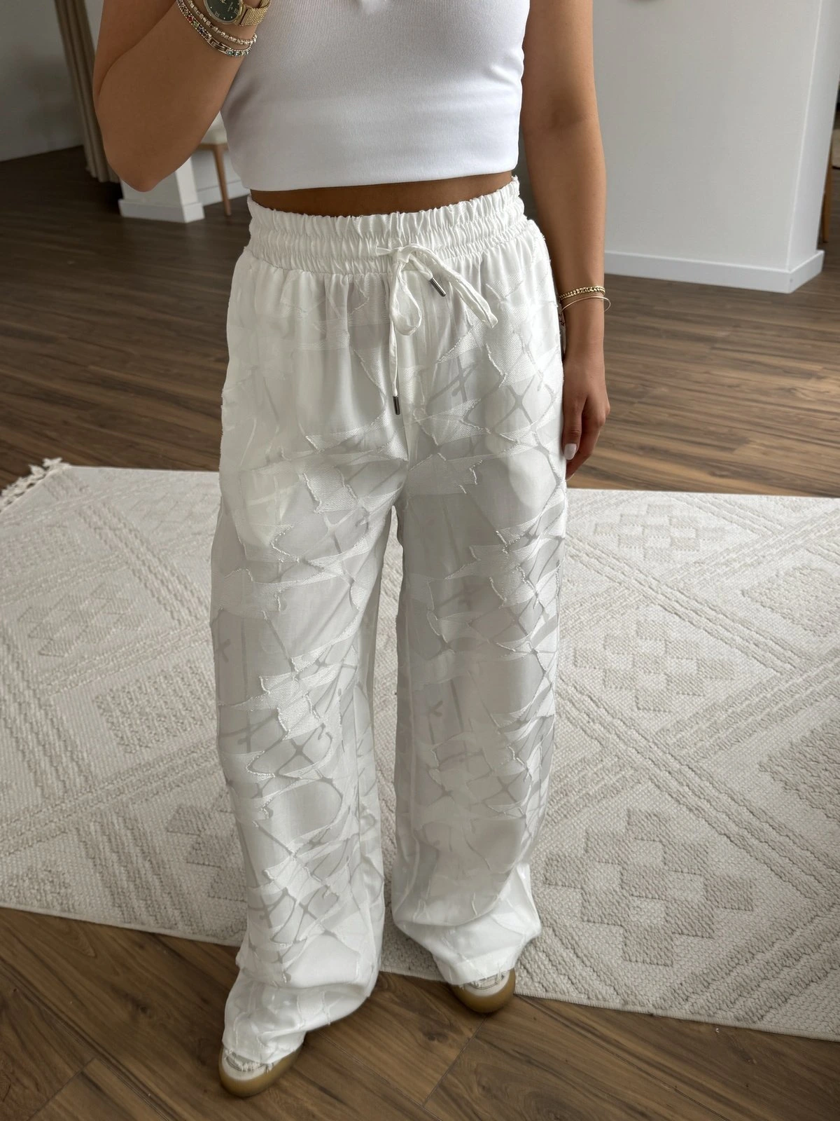 DESEN DOKU CEPLİ BEL LASTİK RAHAT VİSKON PANTOLON - EKRU