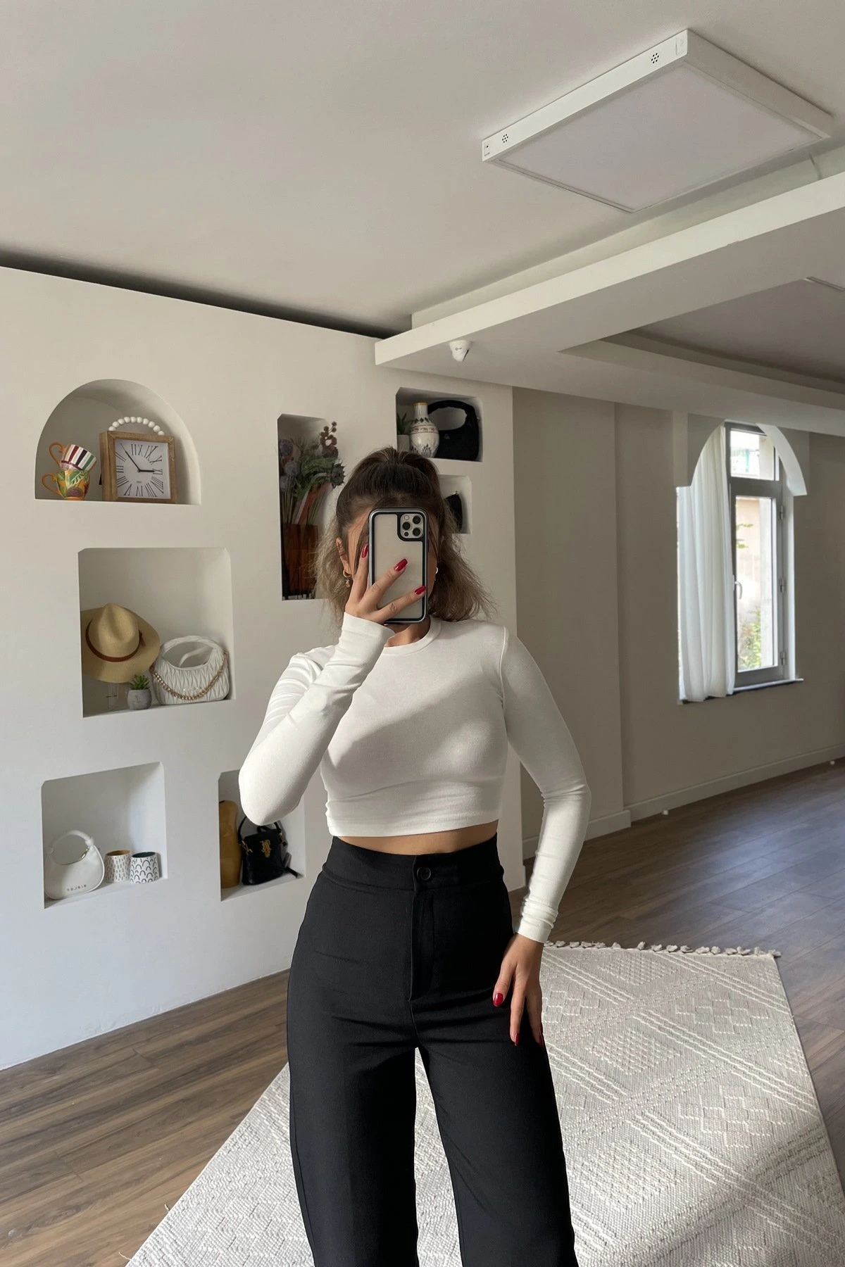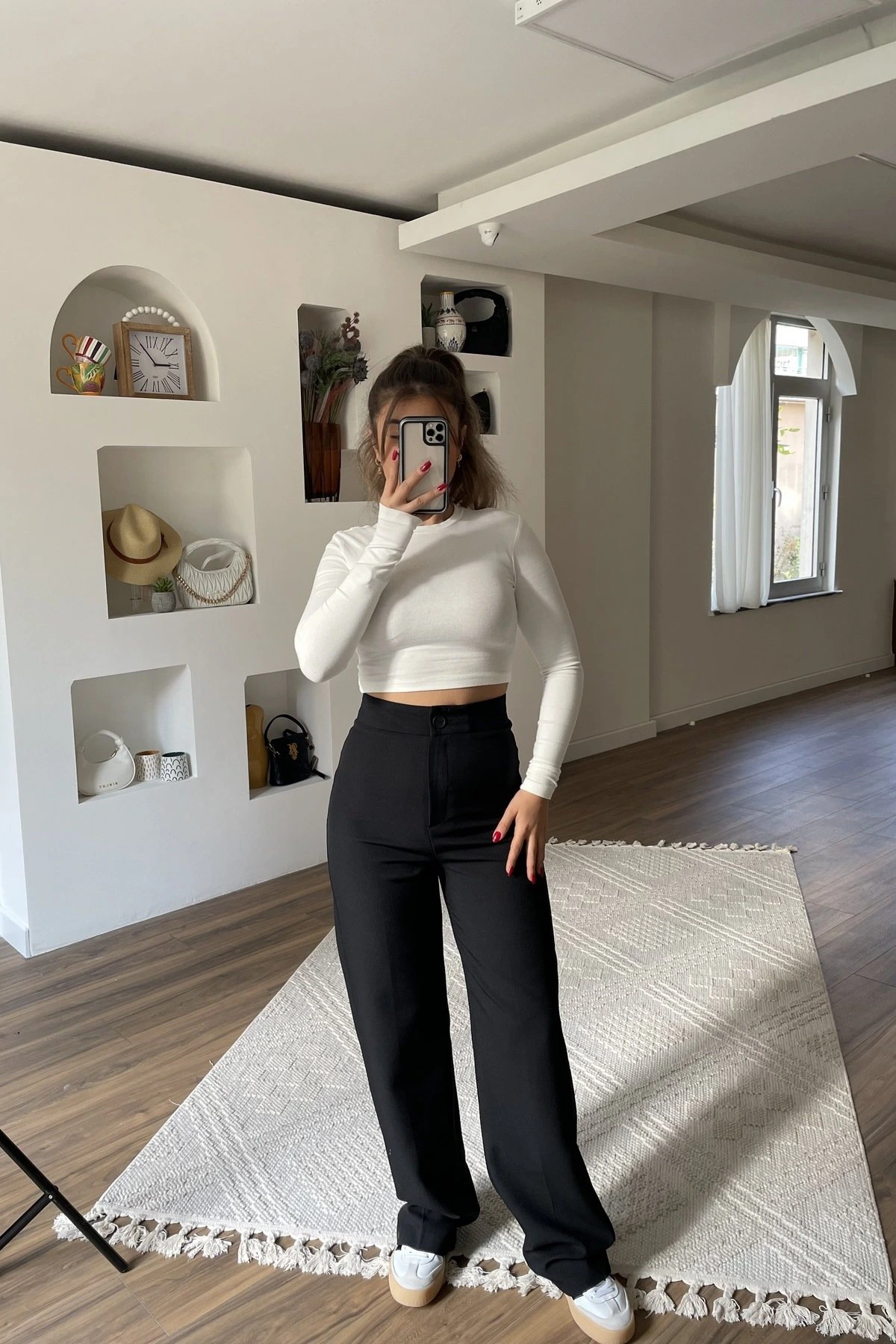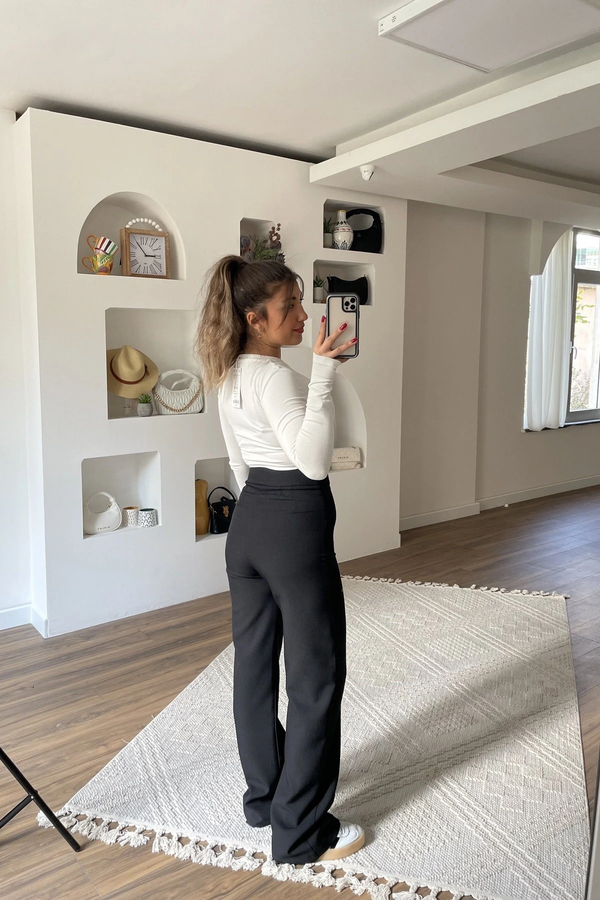 KLASİK KESİM BOL PAÇA LİKRALI KUMAŞ PANTOLON – SİYAH