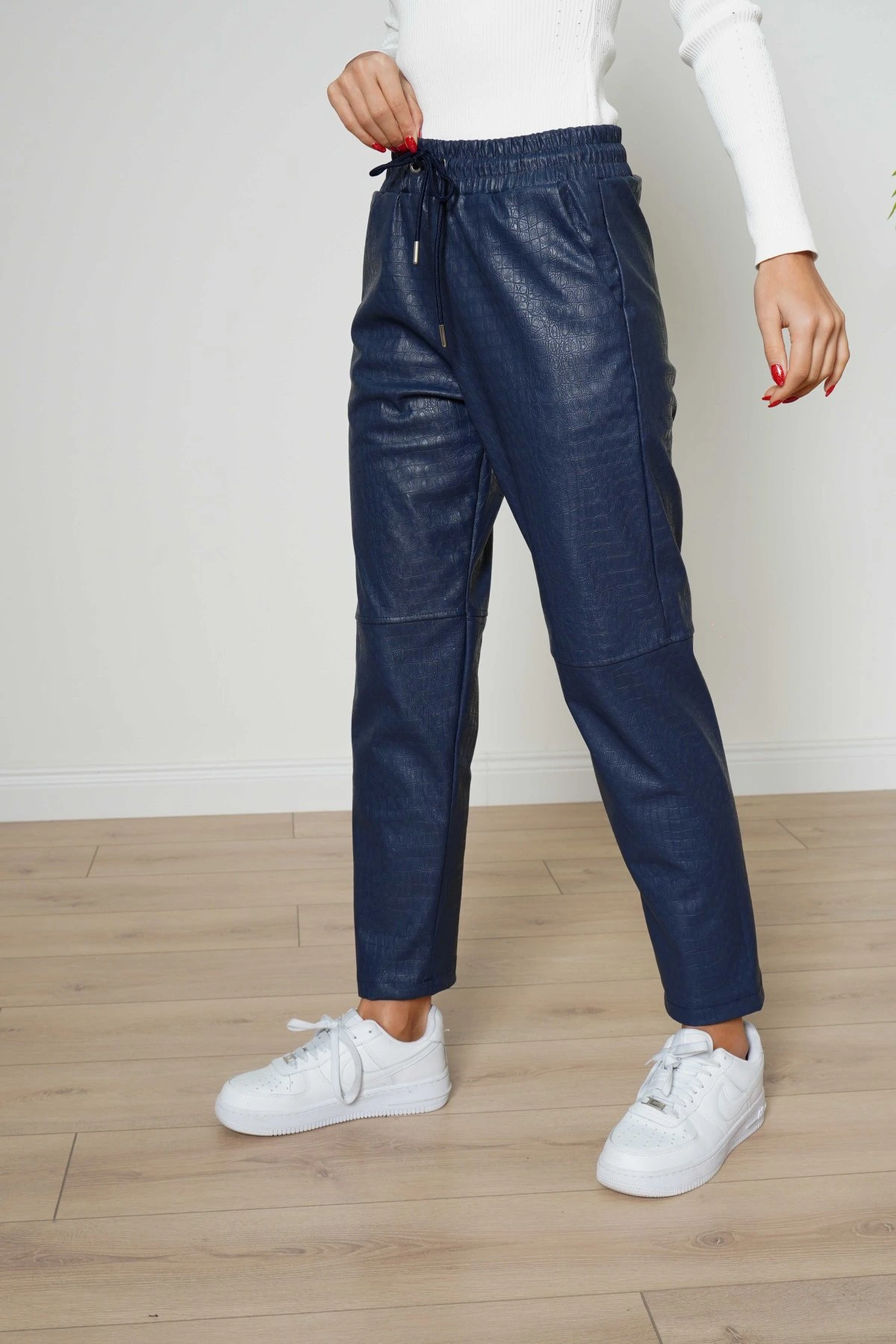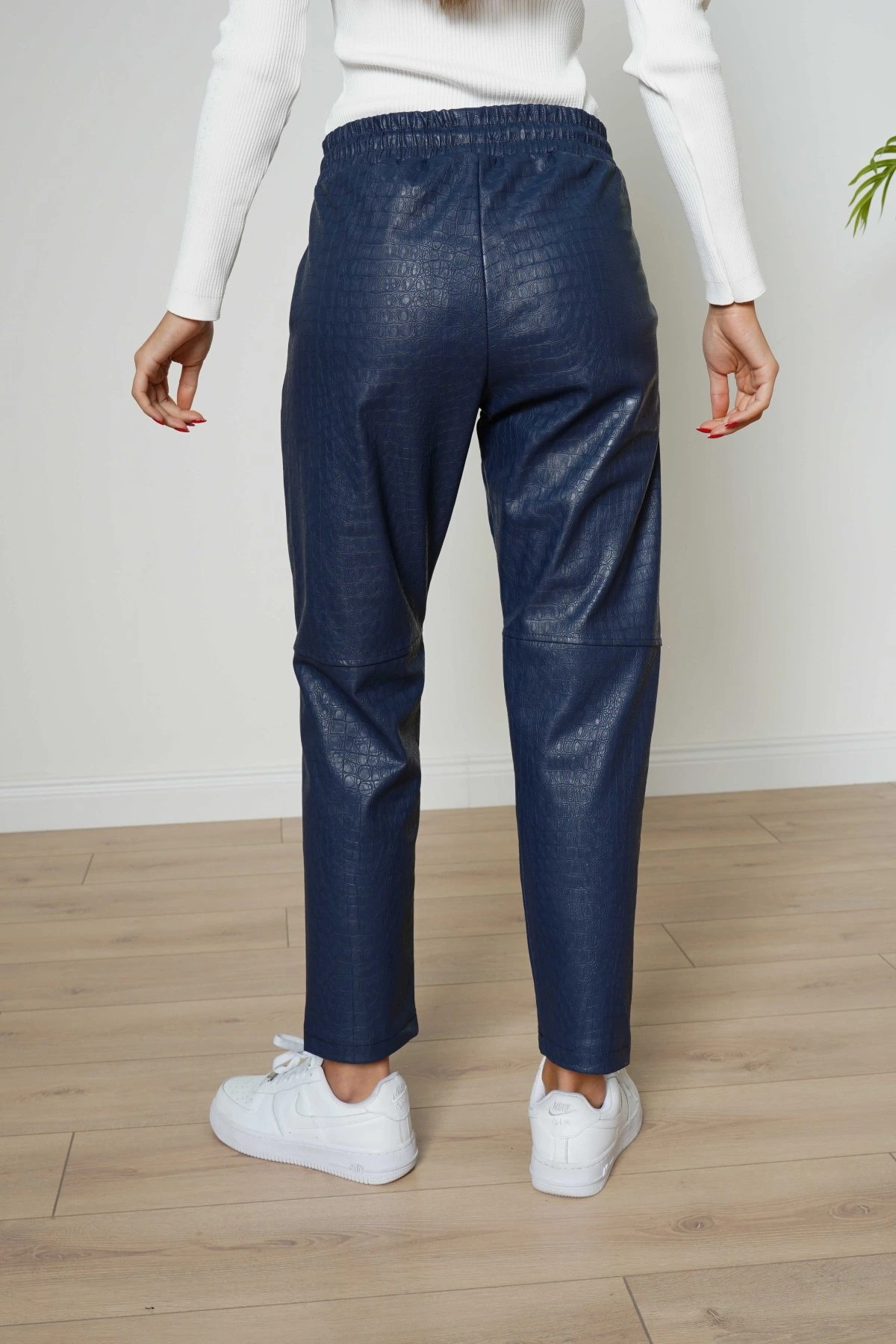 KROKODİL DESEN DİZ DİKİŞLİ DERİ PANTOLON – LACİVERT