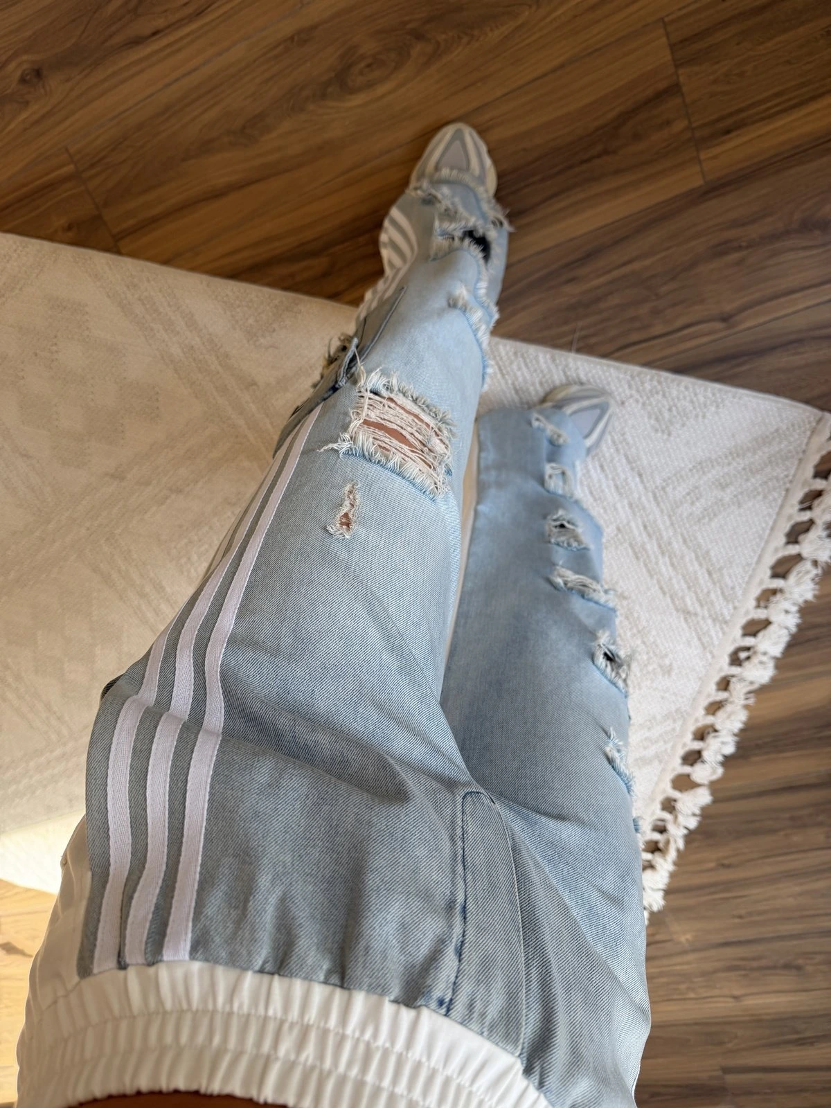 KUMAŞ MİX YIRTIK DETAY KARGO JEAN PANTOLON – EKRU