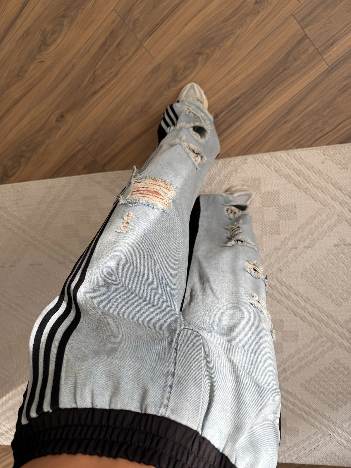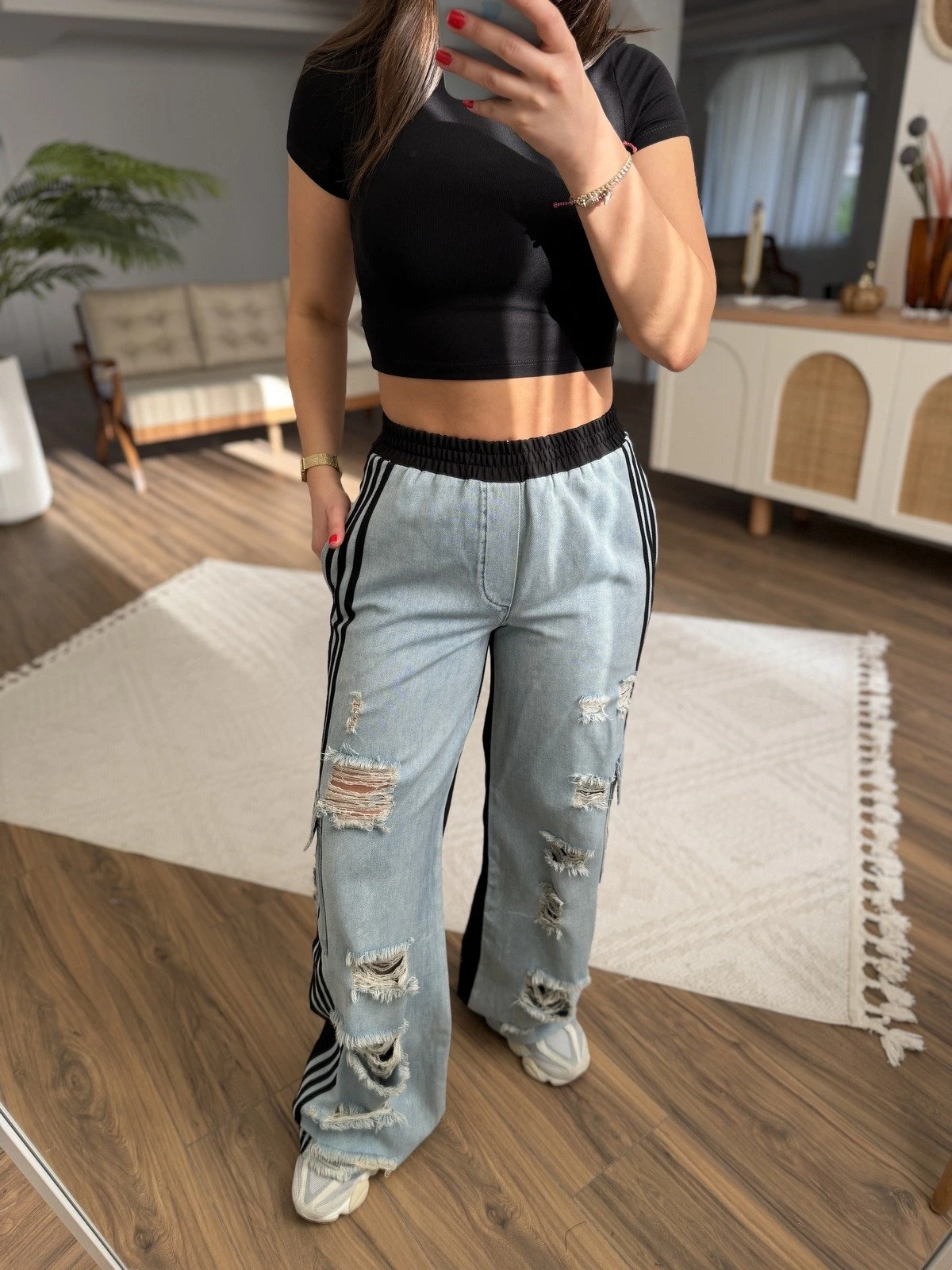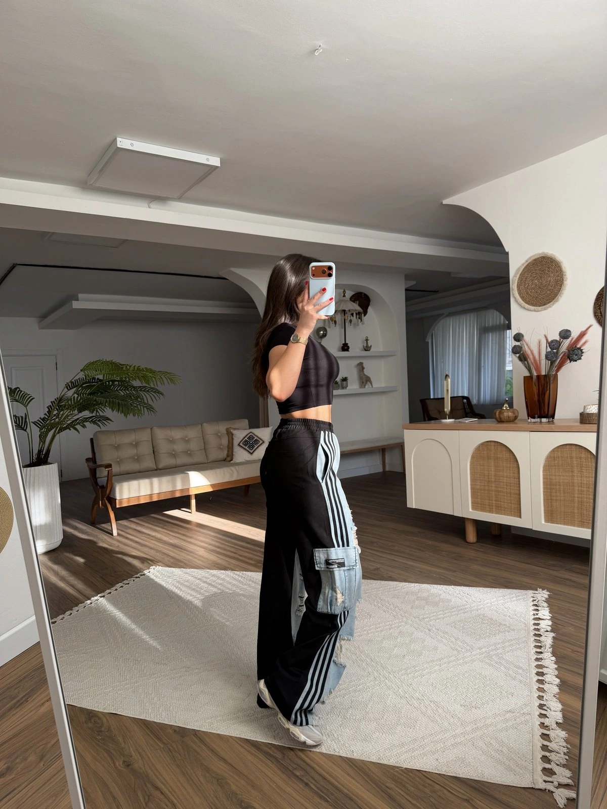 KUMAŞ MİX YIRTIK DETAY KARGO JEAN PANTOLON – SİYAH