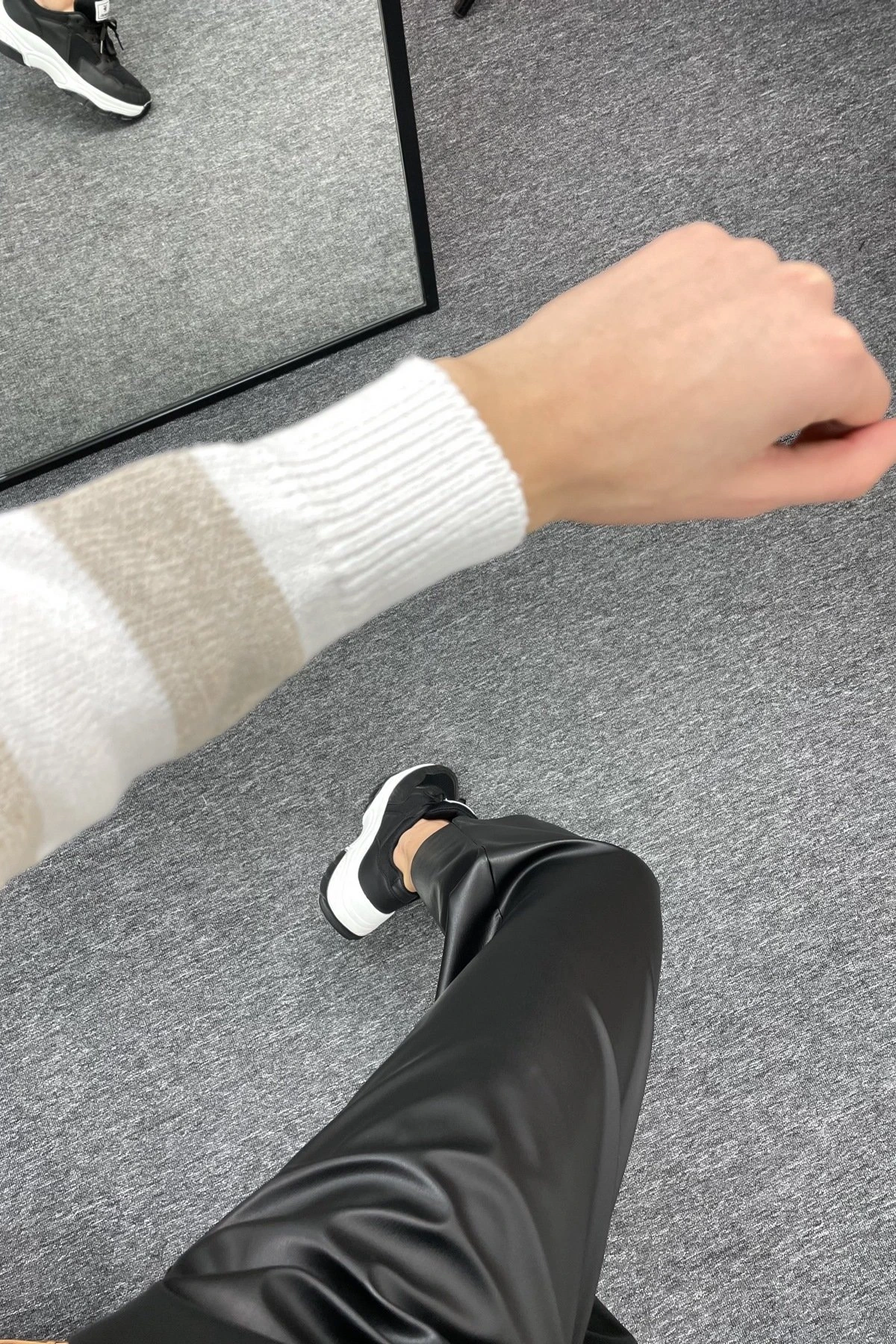 LASTİK BEL PALAZZO DERİ PANTOLON – SİYAH