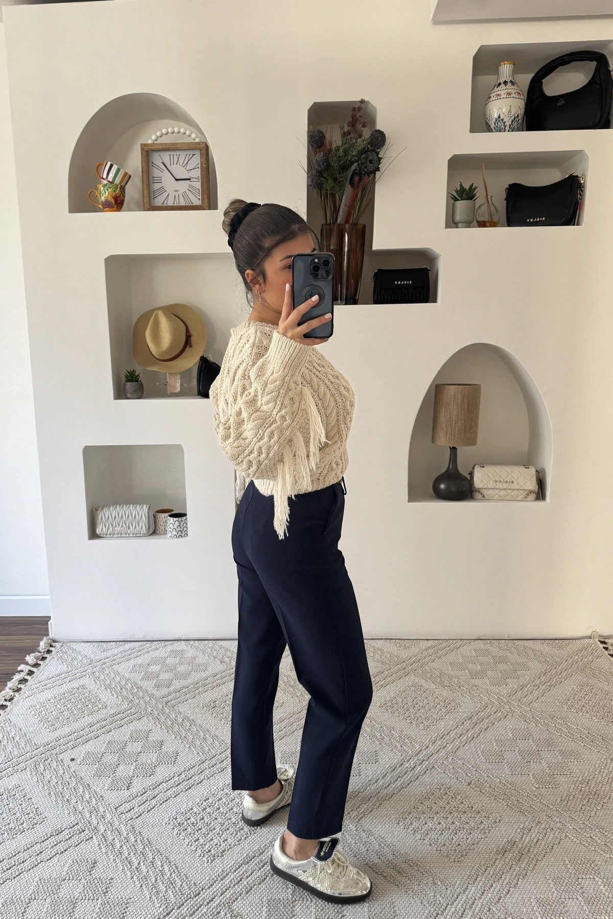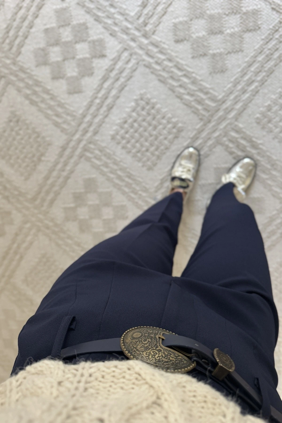 LİKRALI HAVUÇ ETNİK TOKA KEMER PANTOLON – LACİVERT