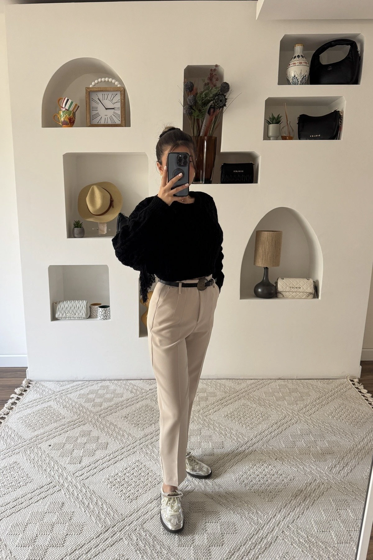 LİKRALI HAVUÇ ETNİK TOKA KEMER PANTOLON – TAŞ