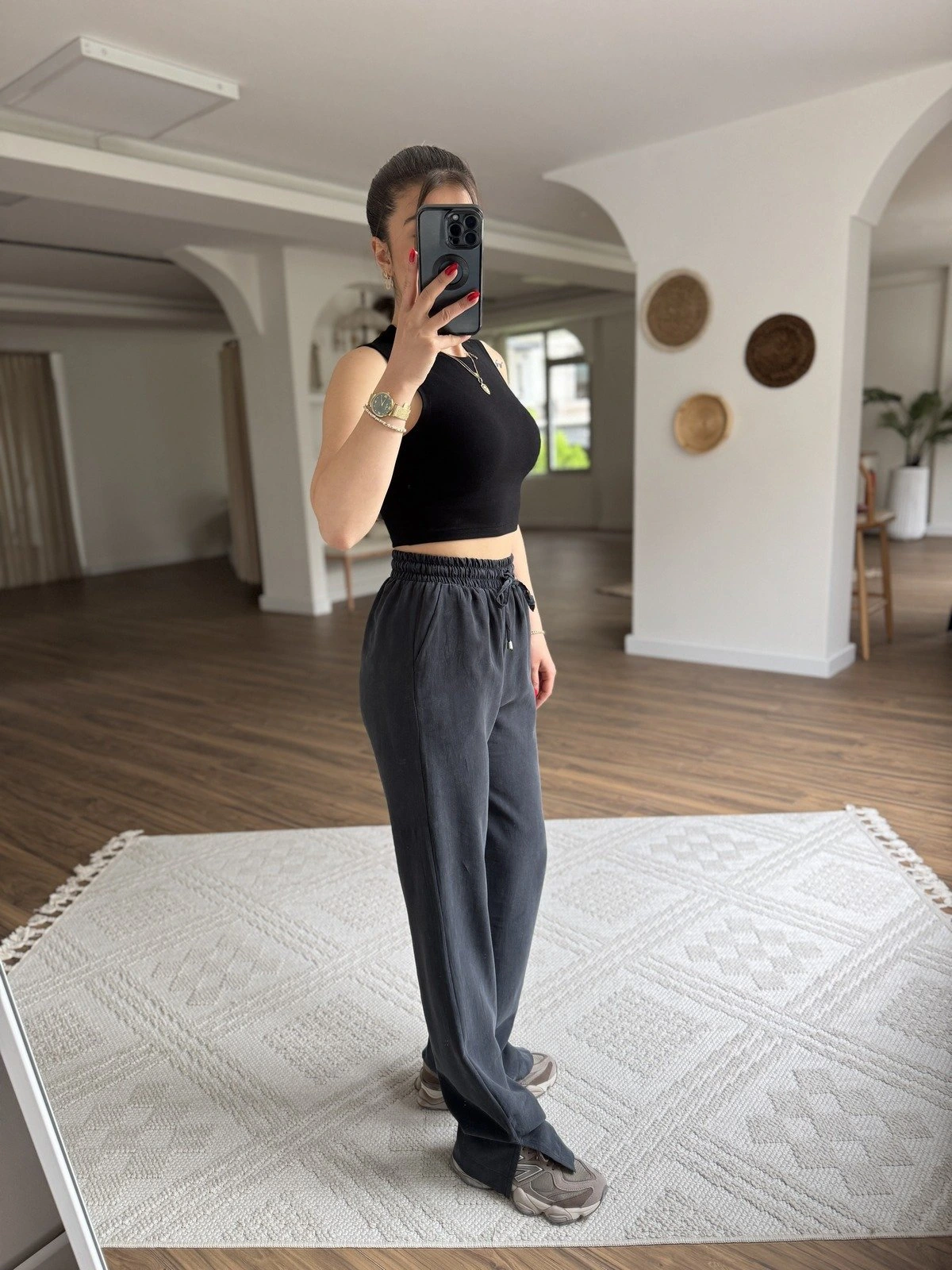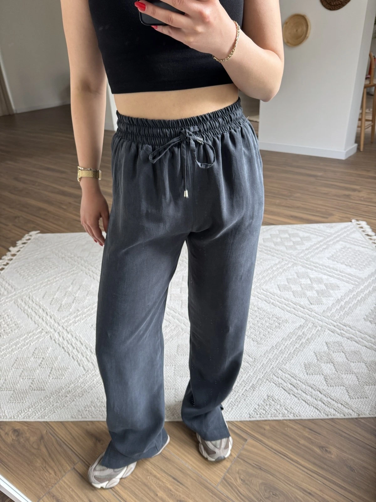 MD MARKA BEL LASTİK PAÇA YIRTMAÇ PAMUK PANTOLON – SOLUK SİYAH