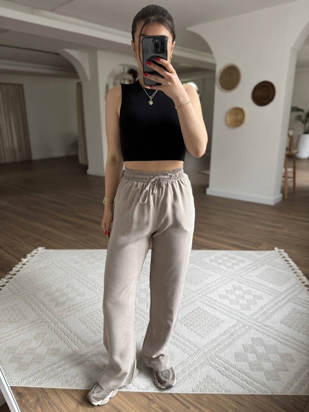 MD MARKA BEL LASTİK PAÇA YIRTMAÇ PAMUK PANTOLON – TAŞ