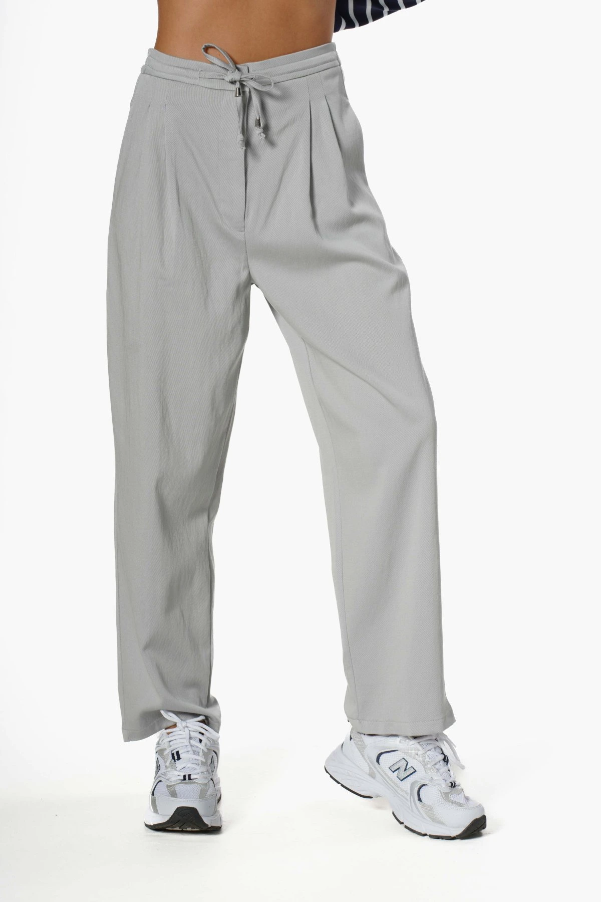 MODAL GABARDİN ÇİFT PİLE CEPLİ ARKA BEL LASTİK PANTOLON – GRİ