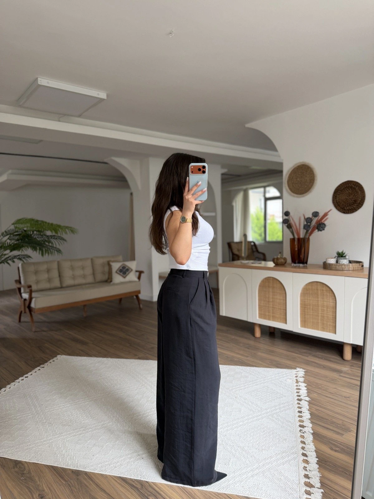 MODALGENİŞ PAÇA PANTOLON – SİYAH