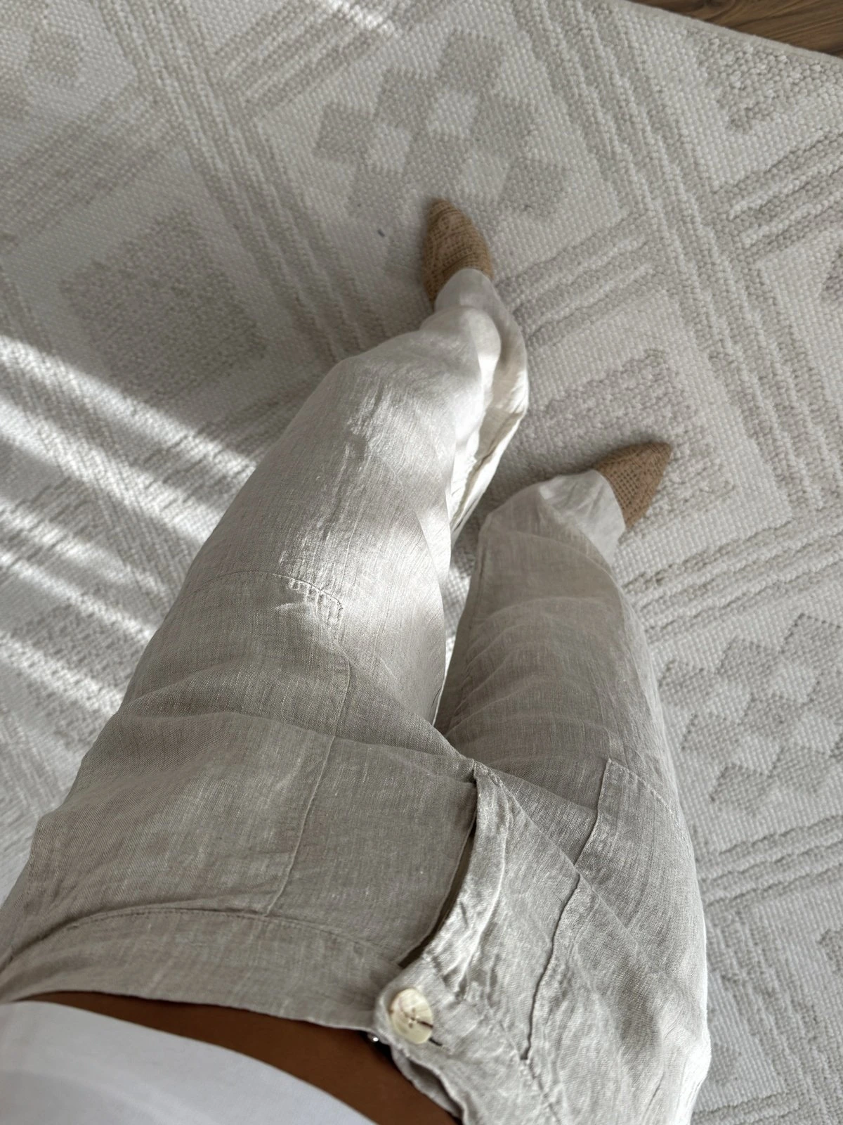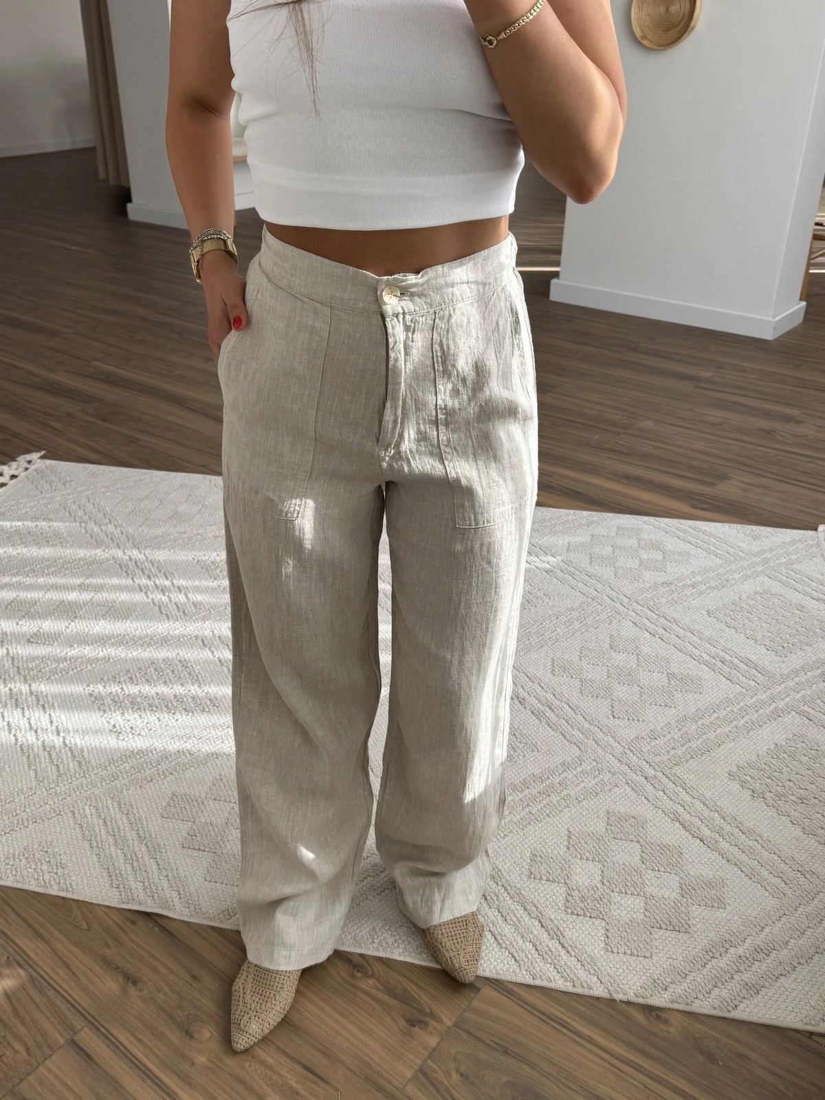 ÖN ARKA CEPLİ HAM KETEN PANTOLON – NATUREL