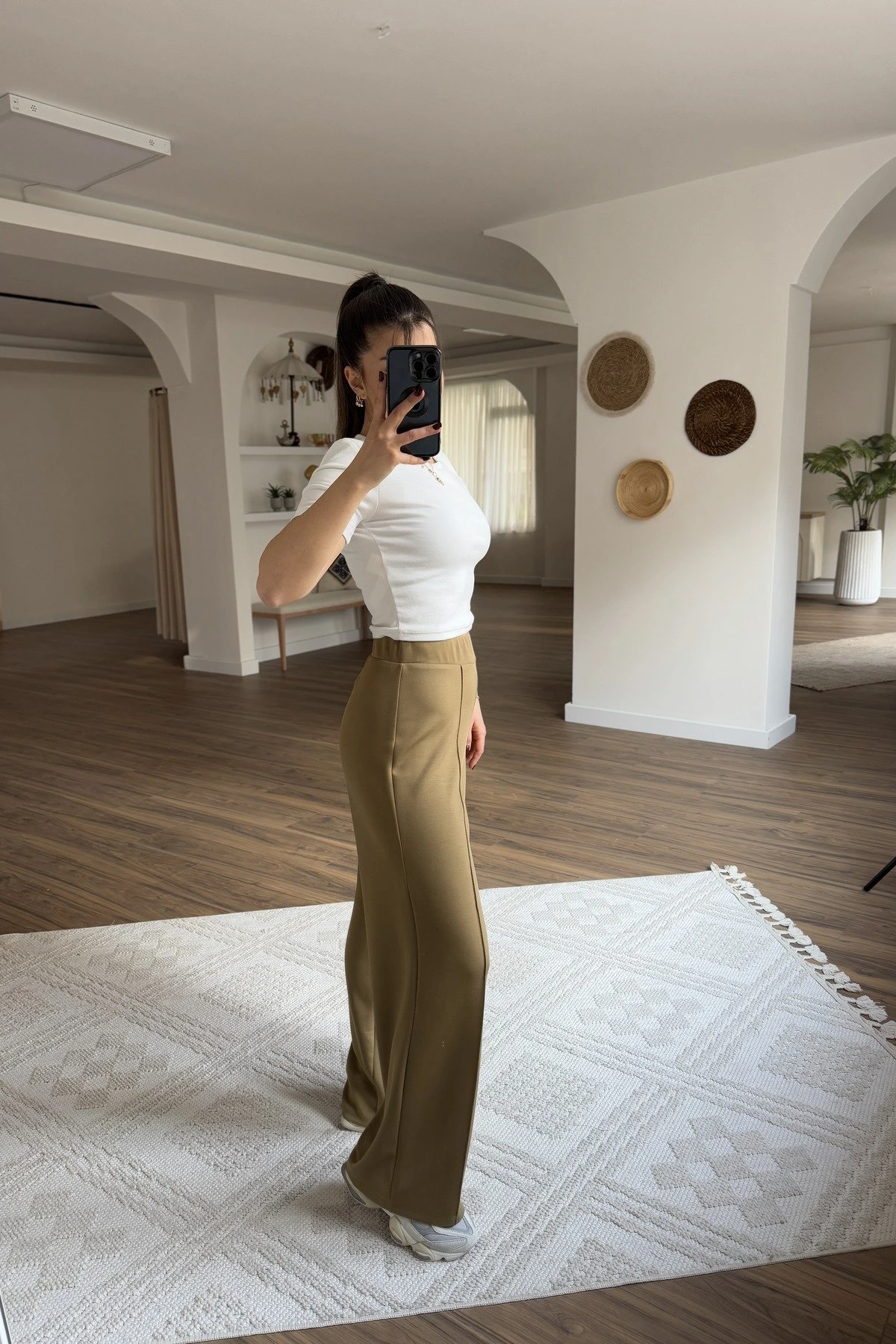 ÖN DİKİŞ GENİŞ PAÇA MODAL PAMUK PANTOLON – OLİVE