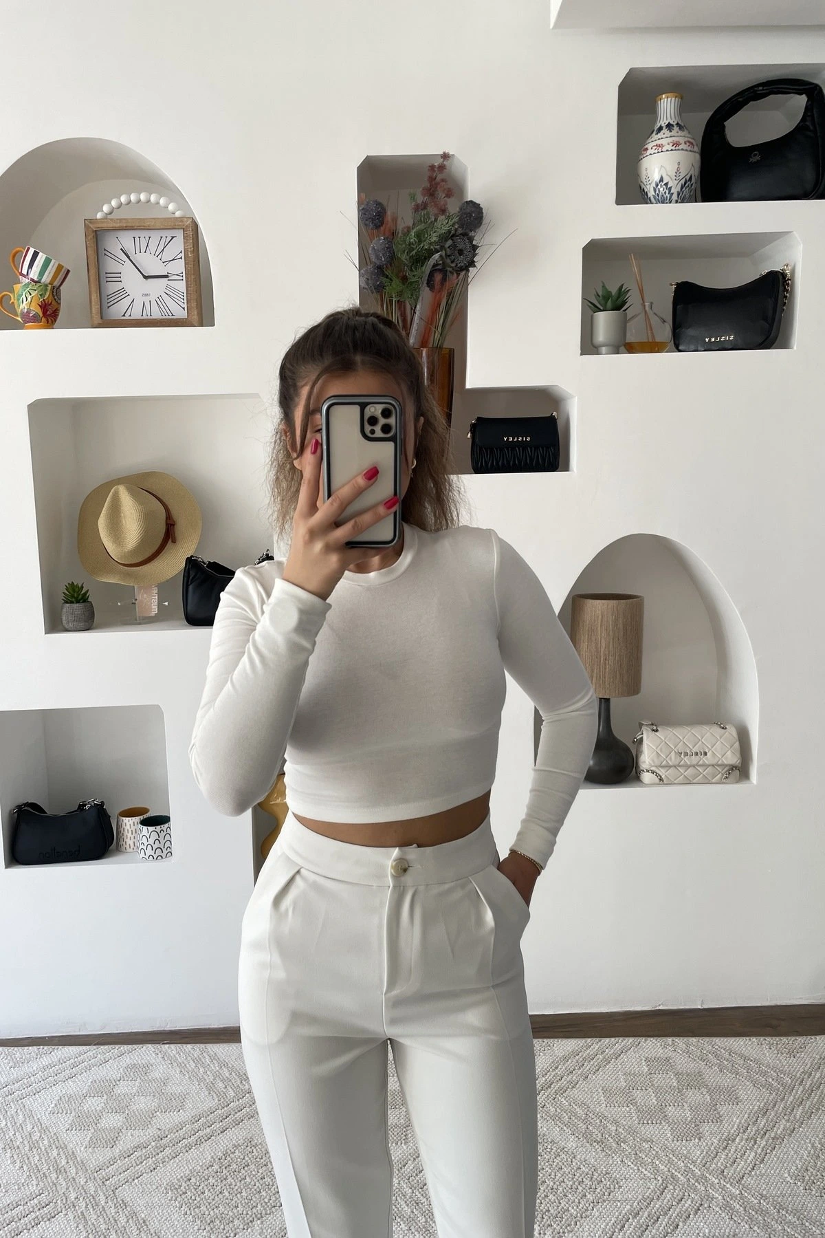 ÖN PİLİ PAÇA YIRTMAÇ LİKRALI PANTOLON – BEYAZ