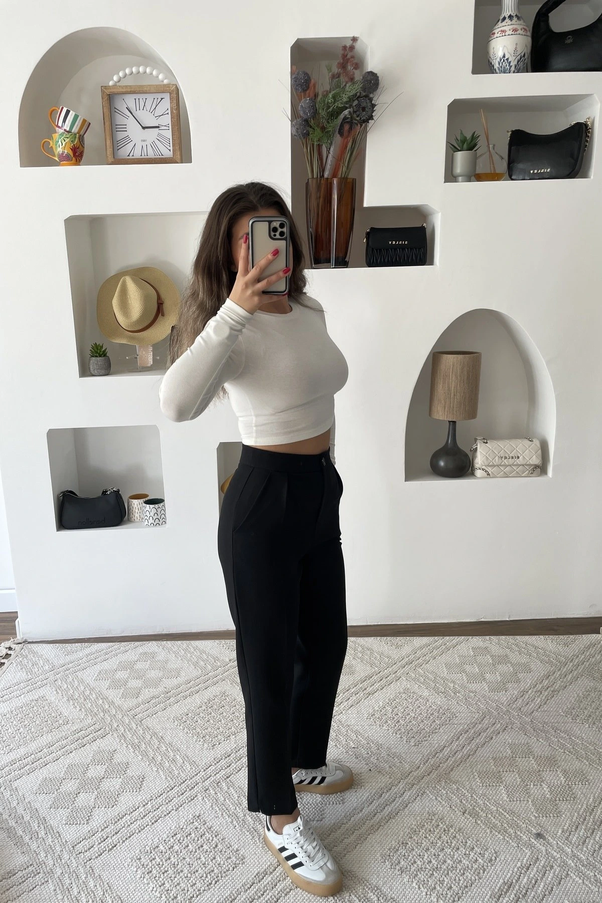ÖN PİLİ PAÇA YIRTMAÇ LİKRALI PANTOLON – SİYAH