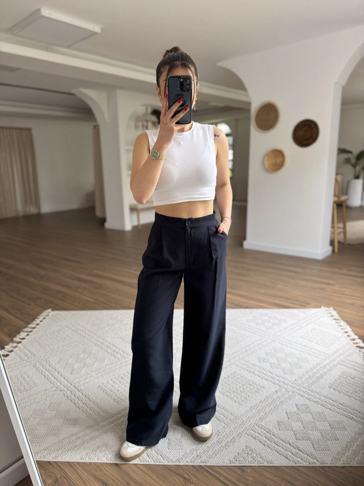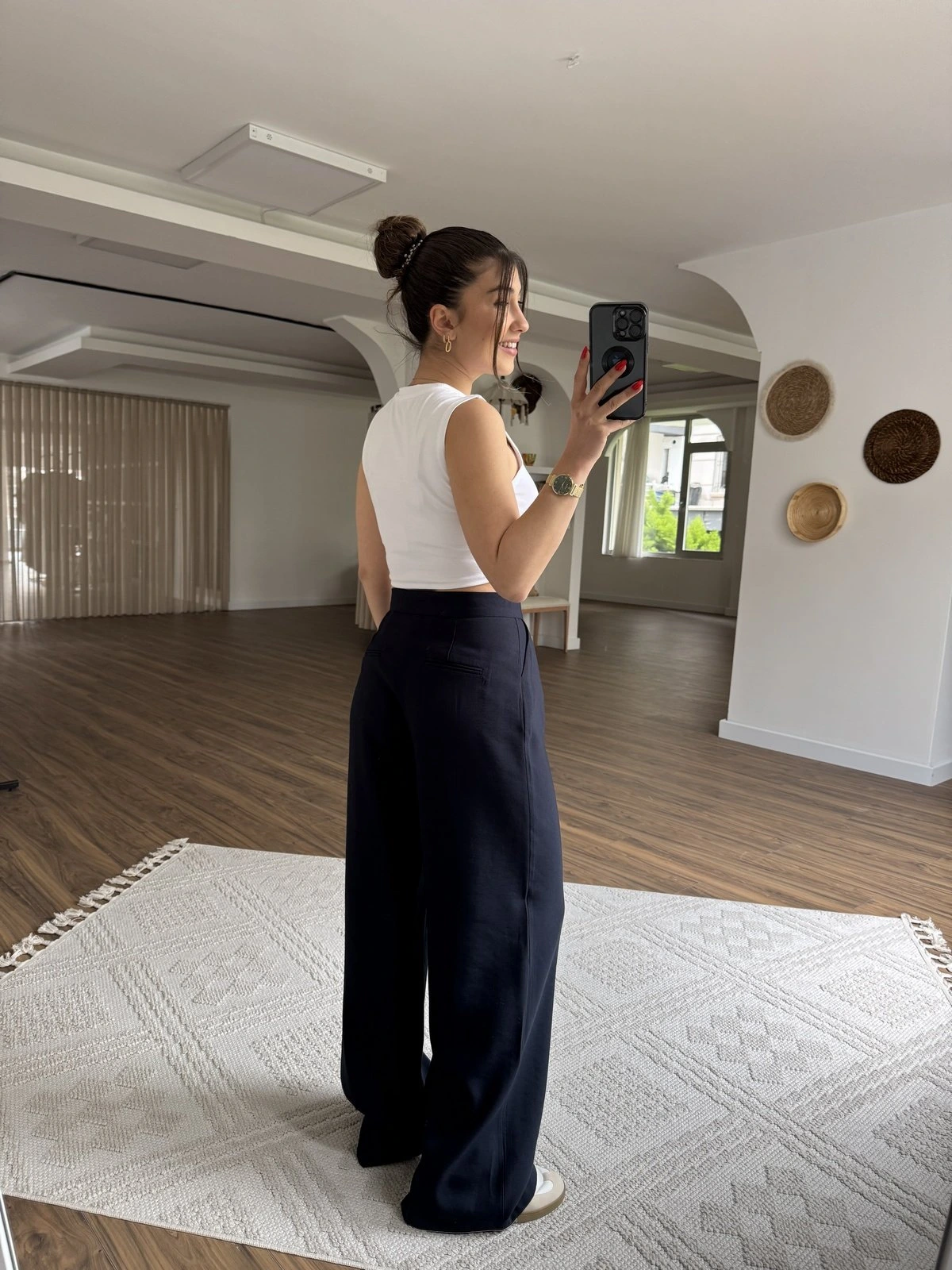 ÖN PİLİ TENSEL BOL PAÇA PALAZZO PANTOLON – LACİVERT