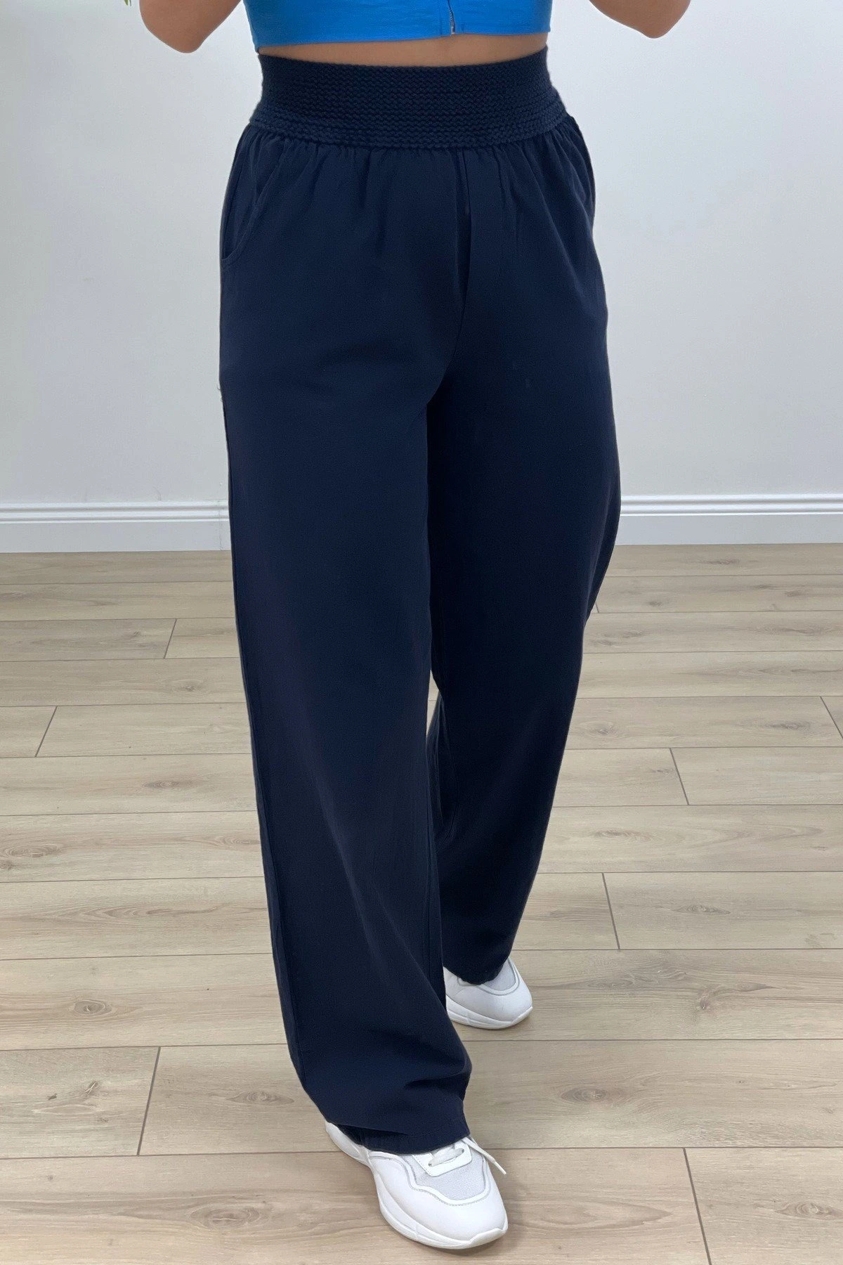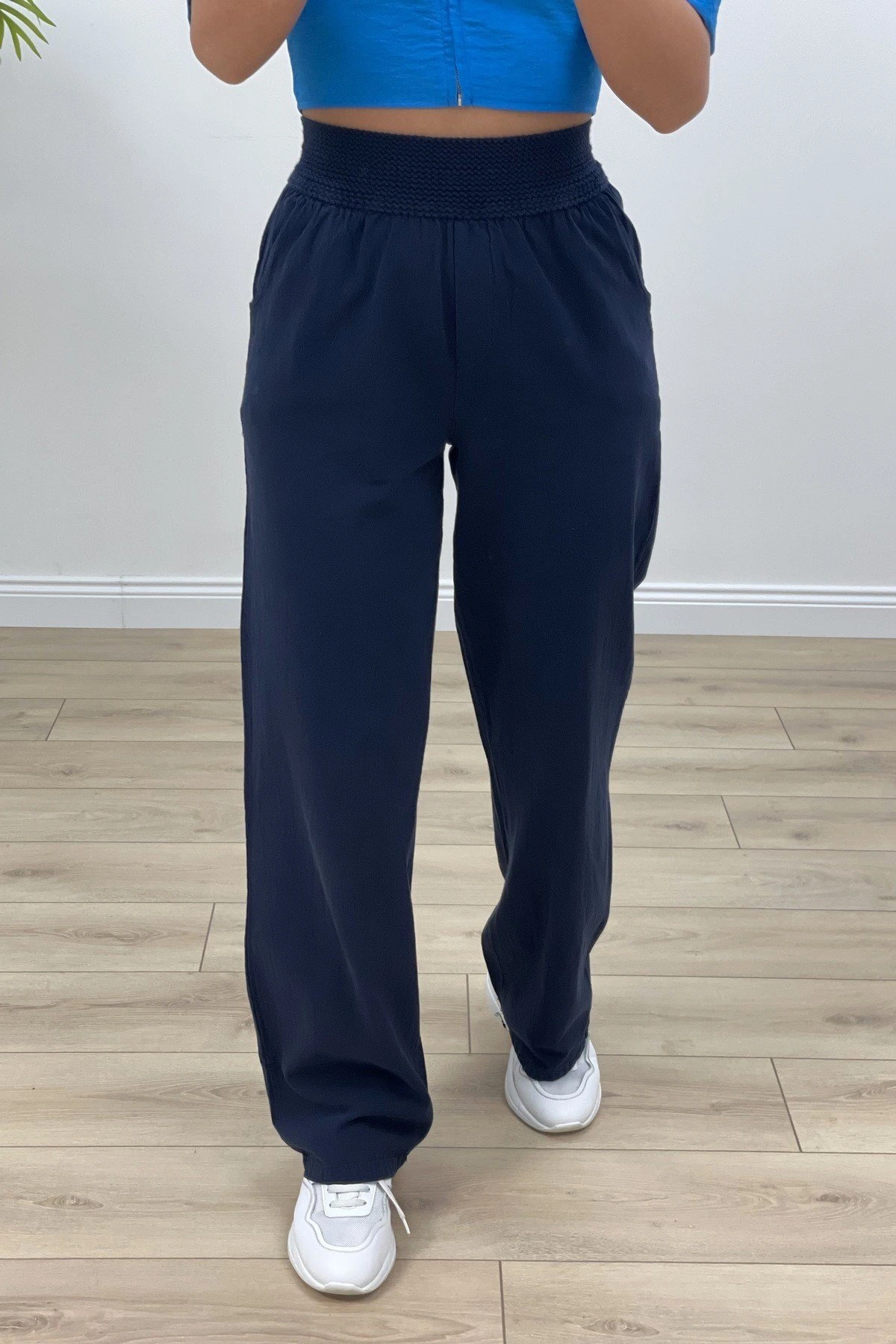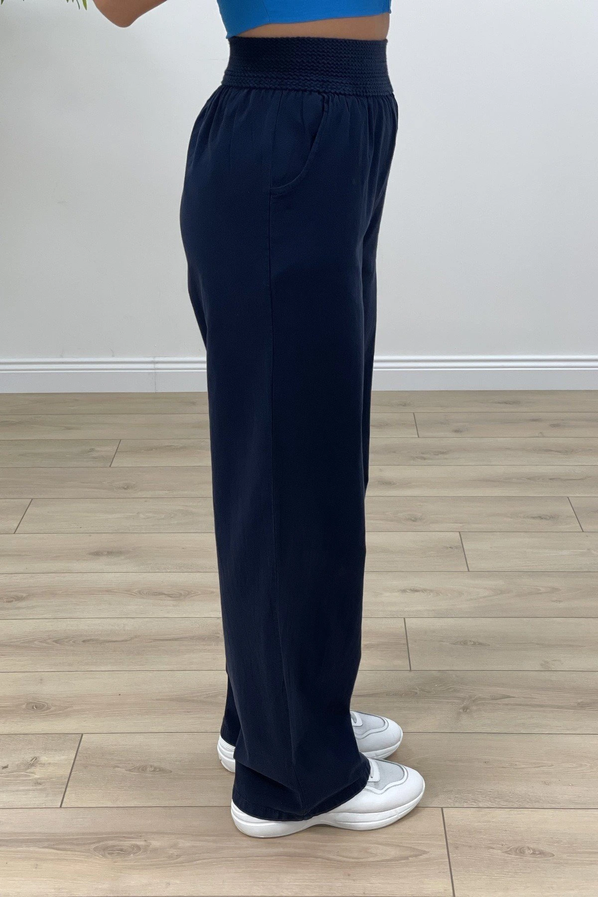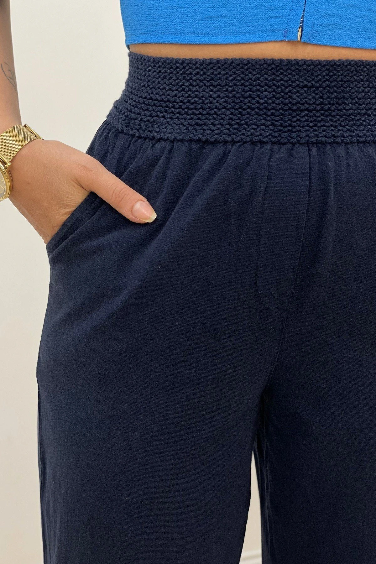 ÖRGÜ KEMER CEPLİ PAMUK BOL PAÇA PANTOLON – LACİVERT