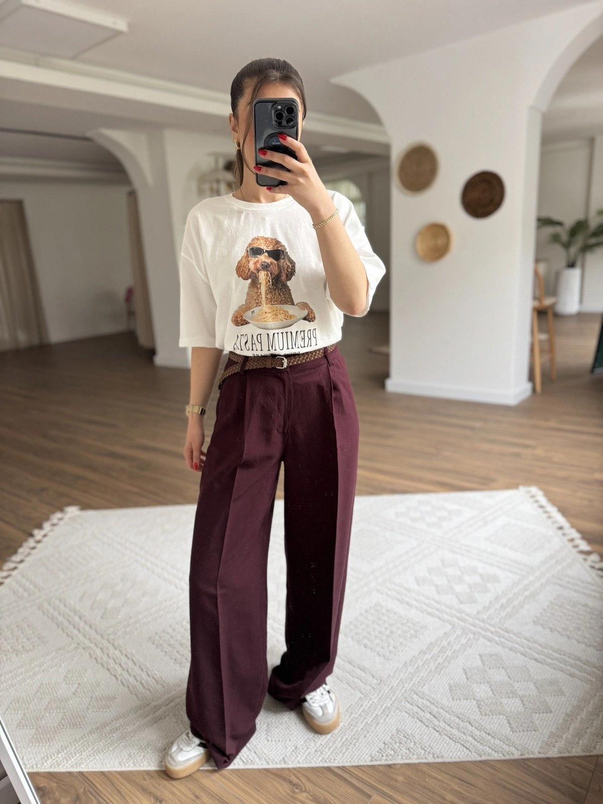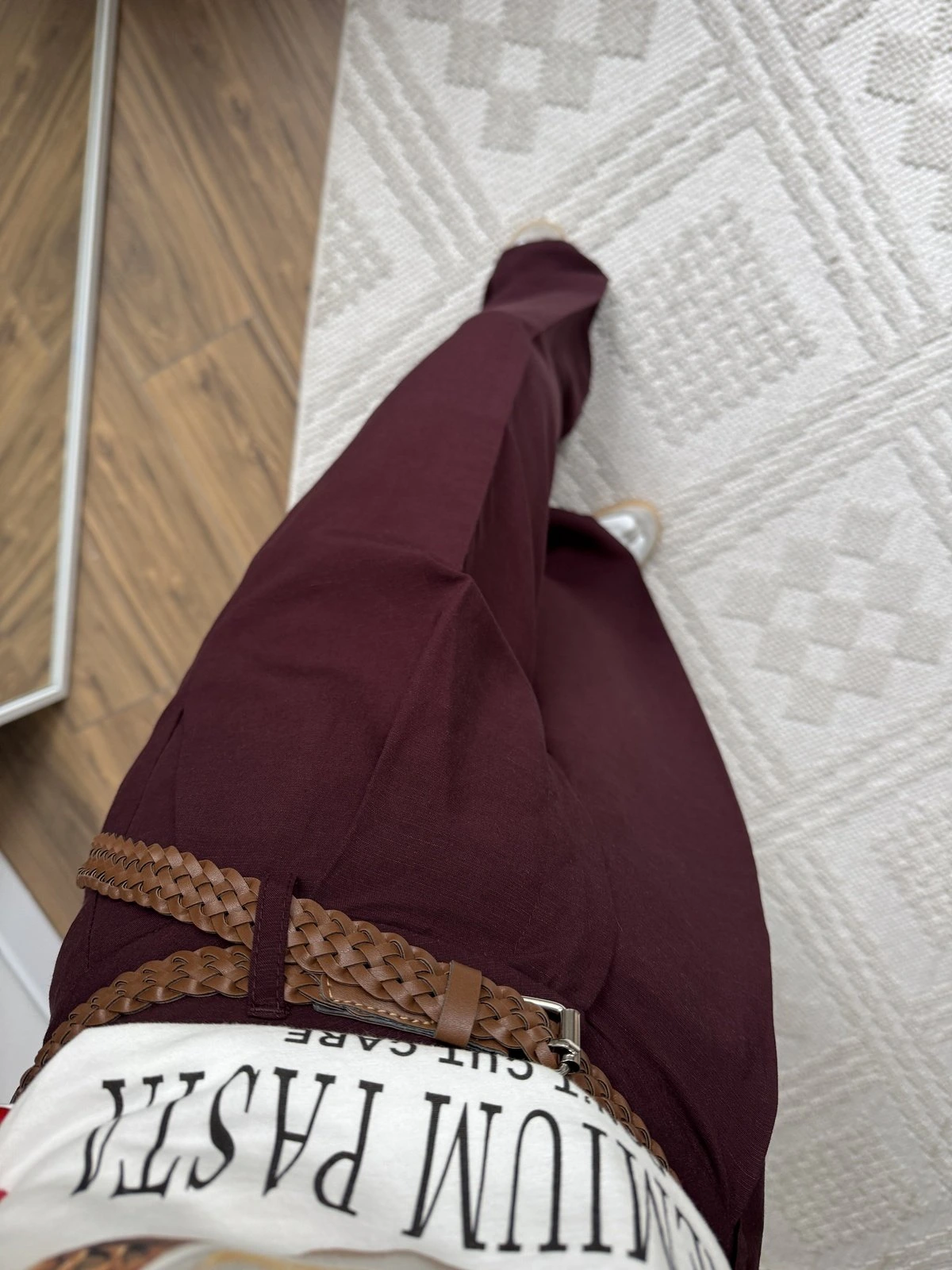 ÖRGÜ KEMER ÖN PİLİ VİSKON KETEN BOL PAÇA PANTOLON – BORDO