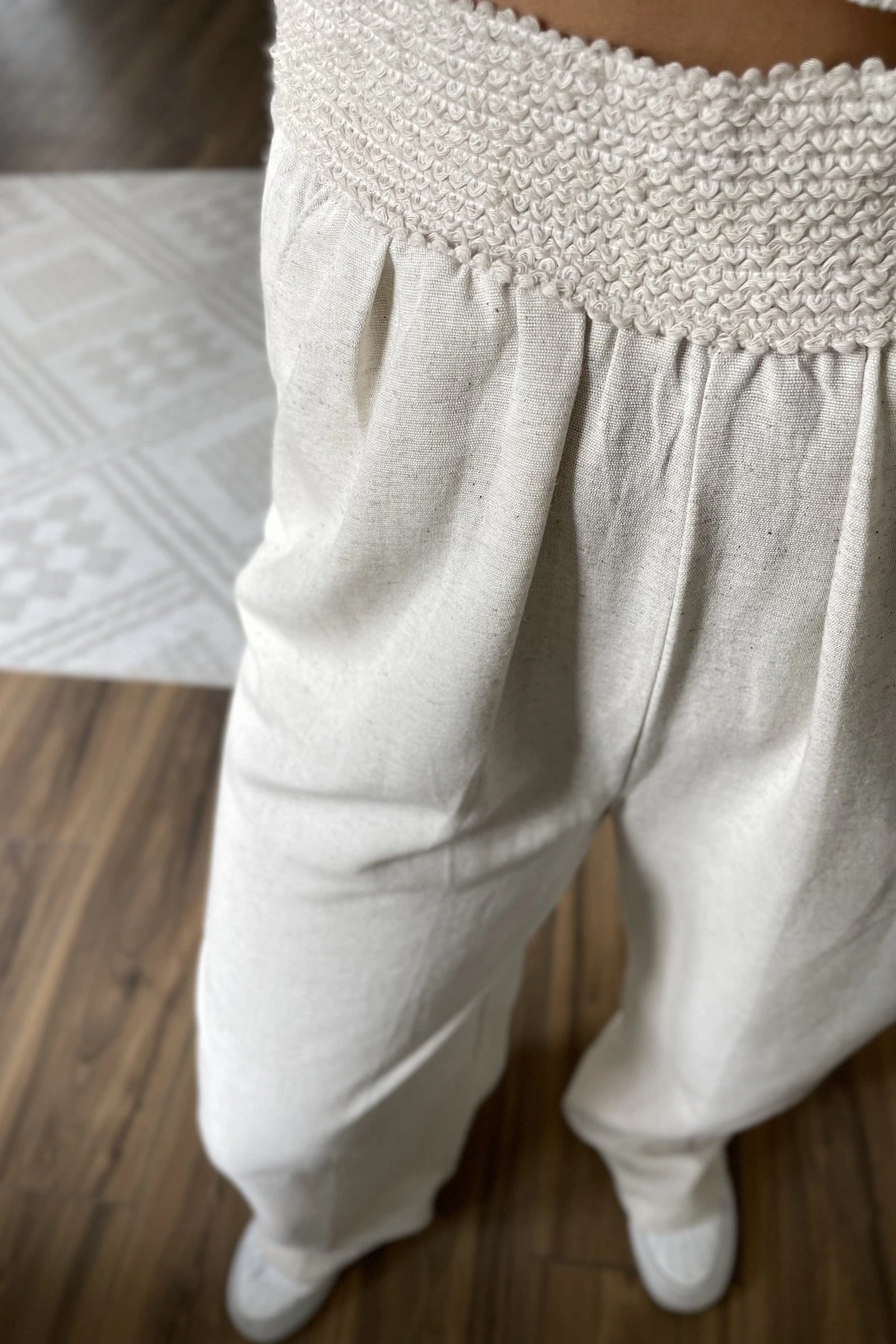 ÖRGÜ LASTİK KEMER CEPLİ BOL PAÇA VİSKON PANTOLON – TAŞ