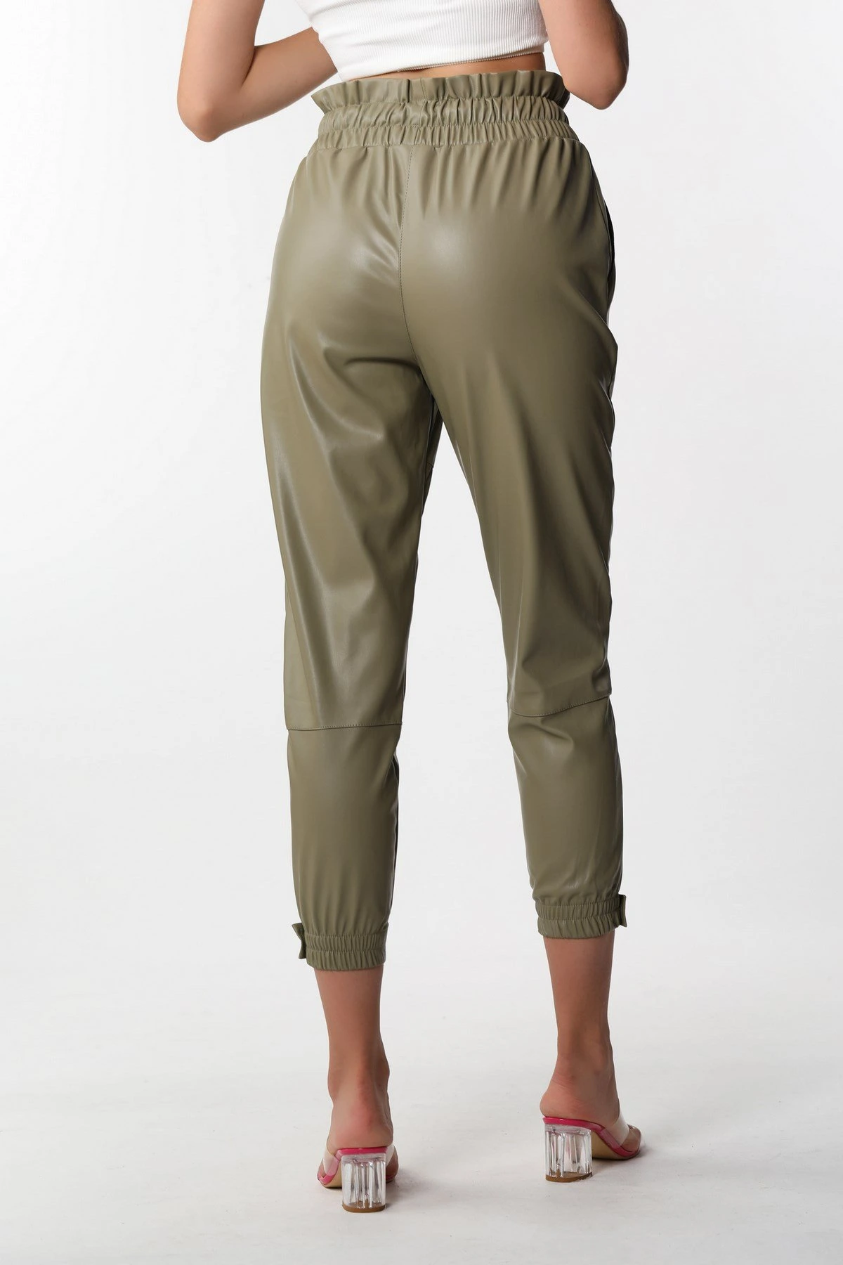 PAÇA ÇITÇITLI DERİ PANTOLON – HAKİ