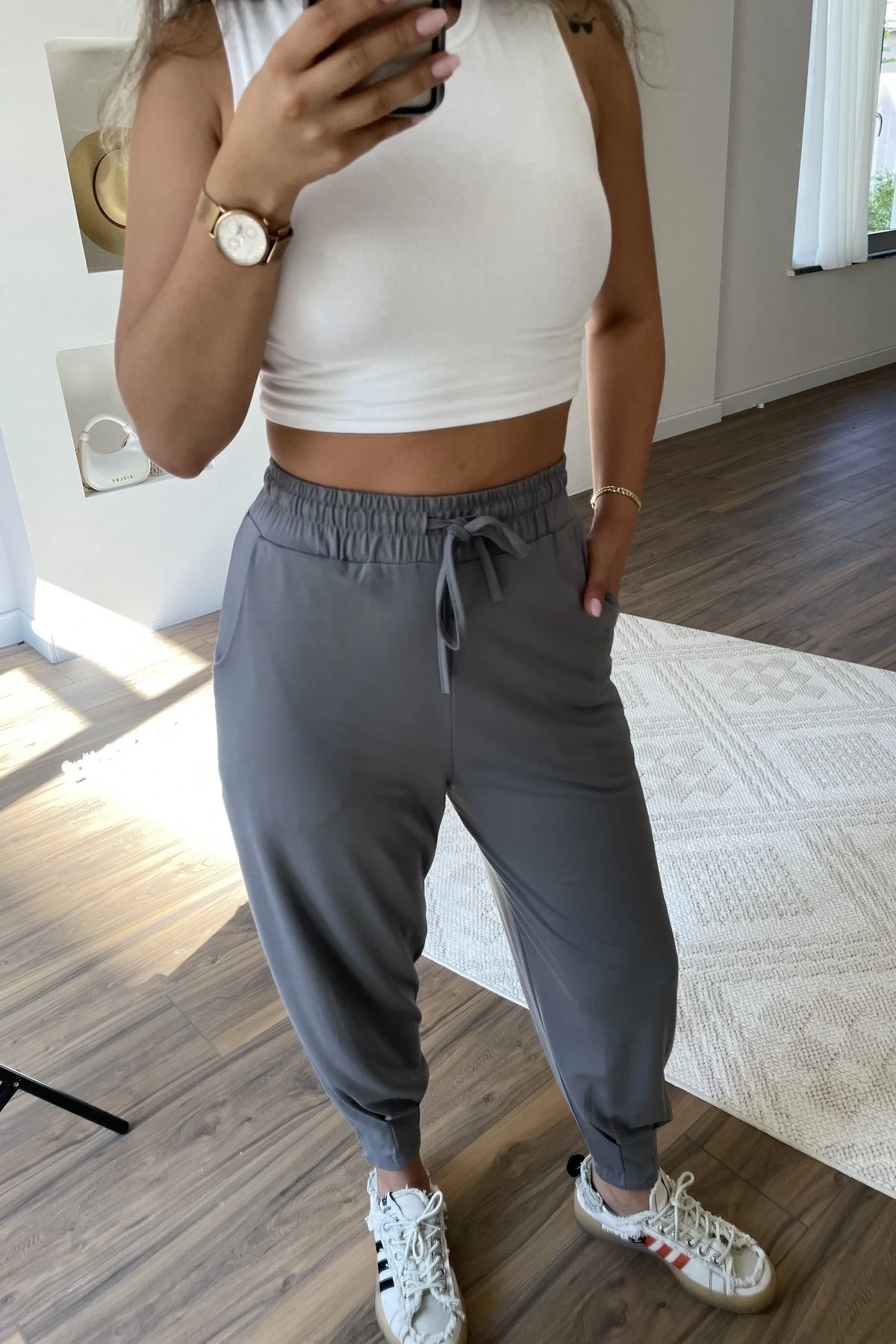PAÇA DİKİŞ BEL LASTİK İPLİ CEPLİ PAMUK KARIŞIM PANTOLON – KOYU GRİ
